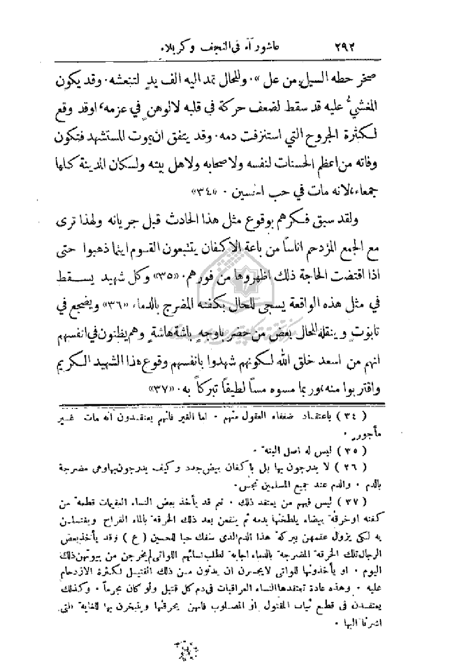 صخر حطه السيل من عل). وللحال تمد إليه ألف يد لتنعشه. وقد يكون المغشي عليه قد سقط لضعف حركة في قلبه لا لوهن في عزمه، أو قد وقع لكثرة الجروح التي استنزفت دمه. وقد يتفق أن يموت المستشهد فتكون وفاته من أعظم الحسنات لنفسه ولأصحابه ولأهل بيته ولسكان المدينة كلها جمعاء، لأنه مات في حب الحسين.