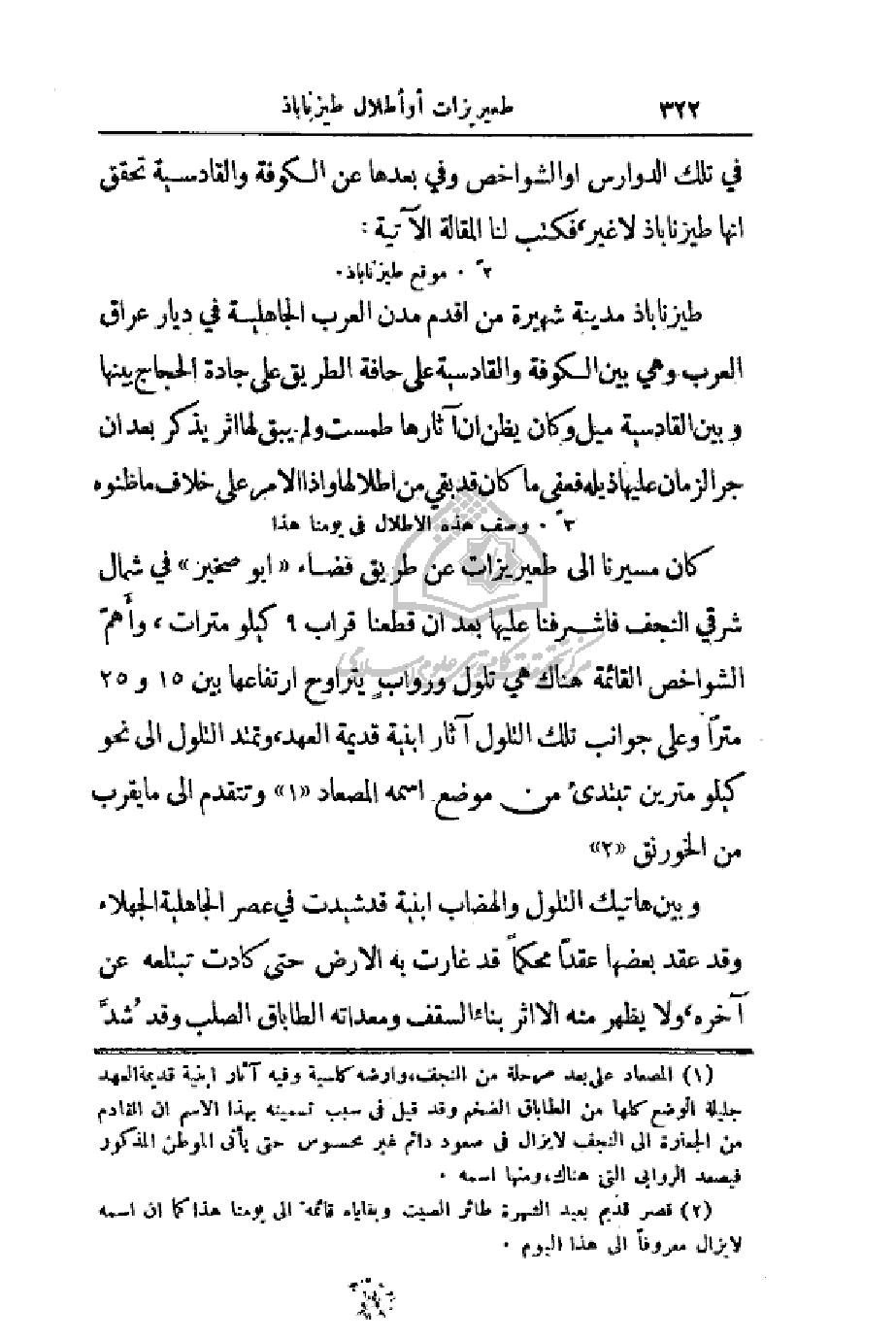 في تلك الدوارس أو الشواخص وفي بعدها عن الكوفة والقادسية تحقق أنها طيزناباذ لا غير، فكتب لنا المقالة الآتية: