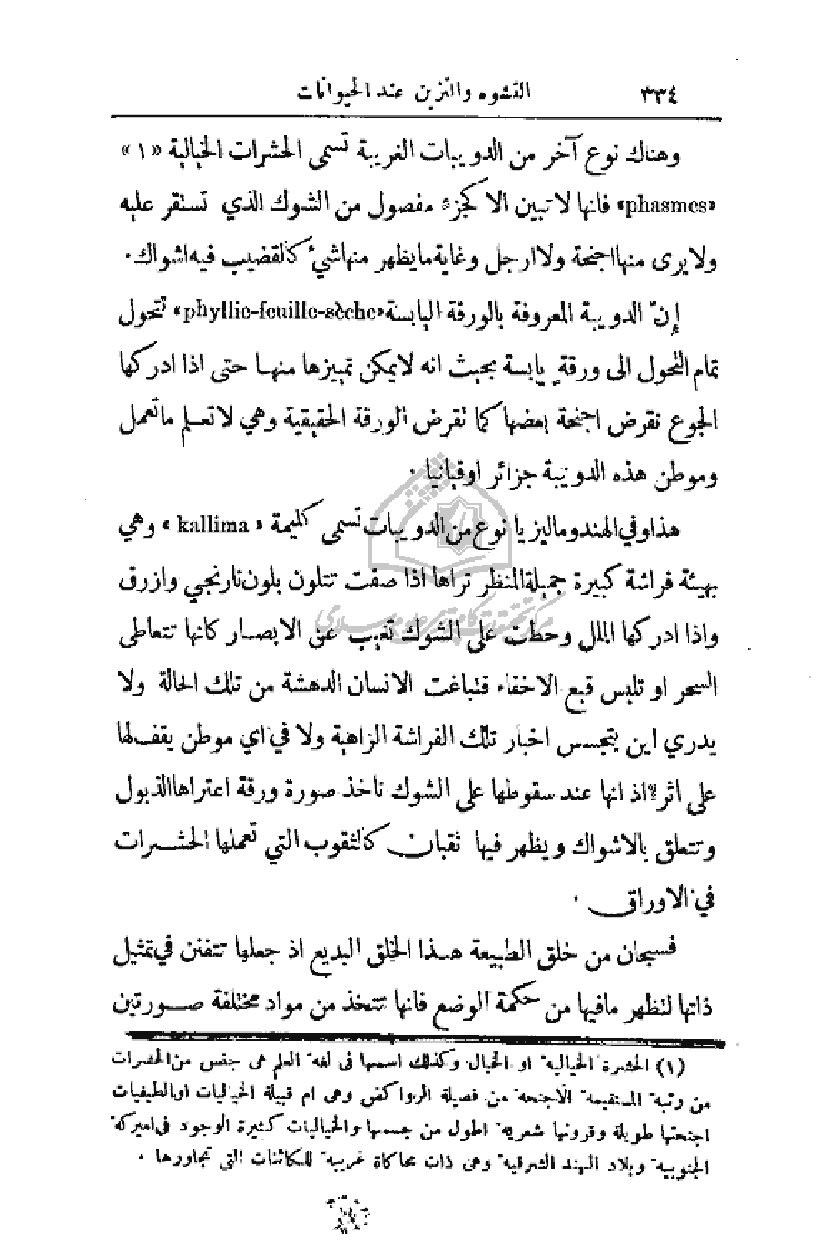 وهناك نوع آخر من الدويبات الغريبة تسمى الحشرات الخيالية فأنها لا تبين إلا كجزءٍ مفصول من الشوك الذي تستقر عليه ولا يرى منها أجنحة ولا أرجل وغاية ما يظهر منها شيء كالقضيب فيه أشواك.