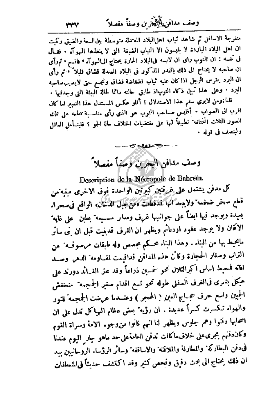 كل مدفن يشتمل على غرفتين كبيرتين الواحدة فوق الأخرى مبنية من قطع صخر ضخمة ولا يبعد أنها قد قطعت (من جبل الدخان) الواقع في صحراء بعيدة ويوجد فيها أيضاً على جوانبها غرف ومعابر مسيعة بطين على غاية الإتقان ولا يوجد عقود أو دعائم ويظهر أن الغرف قد بنيت قبل أن تبنى سائر ما يحيط بها من البناء. وهذا البناء محكم مجصص وله طبقات مرصوفة من التراب وصغار الحجارة وكائن هذه المدافن قد أقيمت لمقاومة الدهر وصد آفاته فمحيط أساس أكبر التلال نحو خمسين ذراعاً وقد عثر القائد دورند على هيكل بشري في الغرف السفلى طوله نحو تسع أقدام صغير الجمجمة منخفض الجبين واسع حرف حجاج العين (المحجر) وعندما عرضت الجمجمة للنور والهواء تكسرت كسراً عديدة. إن رؤية بعض عظام الهياكل تدل على أن أصحابها دفنوا وهم جلوس ويظهر لنا انهم كانوا من وجوه الأمة وسراة القوم وكان دفنهم يجري على خلاف ما كانت تدفن العامة على حد ما هو جارٍ اليوم عندنا في دفن البطاركة والمطارنة والملافنة والأساقفة وسائر الرؤساء الروحانيين بيد أن ذلك يحتاج إلى بحث دقيق وفحص كثير وقد اكتشف حديثاً في المنعطفات