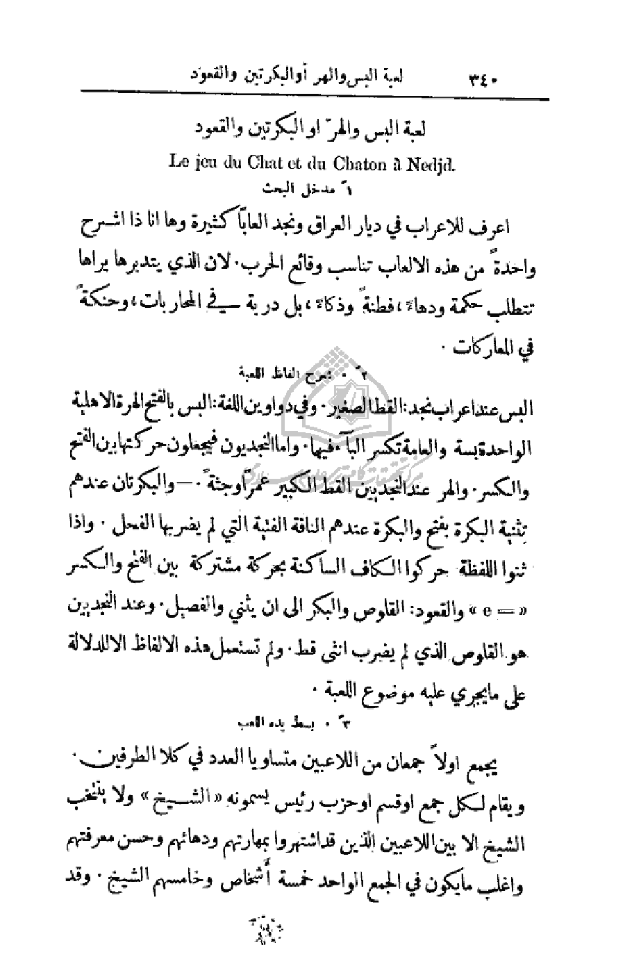 اعرف للأعراب في ديار العراق ونجد ألعاباً كثيرة وها أنا ذا اشرح واحدةً من هذه الألعاب تناسب وقائع الحرب. لأن الذي يتدبرها يراها تتطلب حكمة ودهاءً فطنةً وذكاءً، بل دربة في المحاربات، وحنكة في المعاركات.