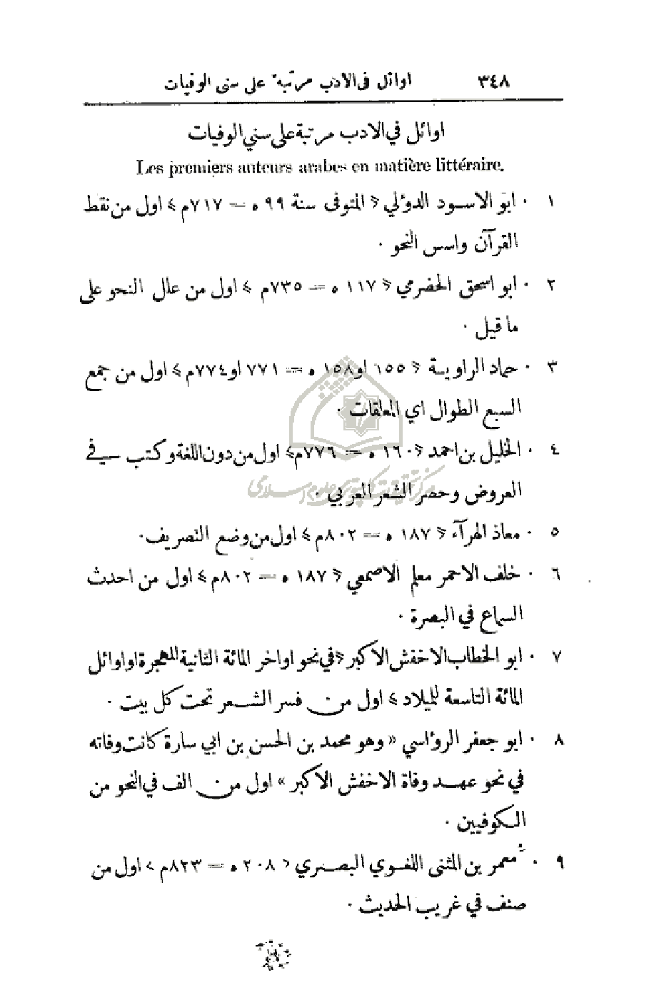 9 - معمر بن المثنى اللغوي البصري (208هـ - 823م) أول من صنف في غريب الحديث.