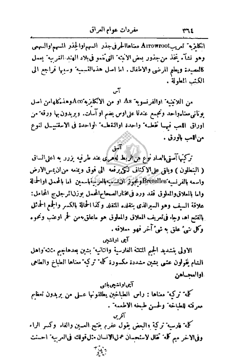 إنكليزية تعريب معناها الحرفي جذر السهم أو الجذر المسهم أو السهمي وهو نشاء يتخذ من جذور بعض الأنبتة التي تنمو في بلاد الهند الغربية يعمل كالعصيدة ويطعم المرضى والأطفال. أما أصل هذه التسمية وسببها فراجع إلى الكتب المطولة.