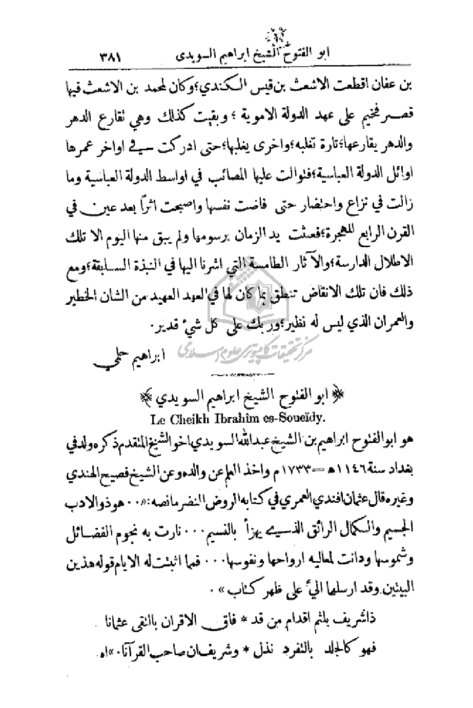 هو أبو الفتوح إبراهيم بن الشيخ عبد الله السويدي أخو الشيخ المتقدم ذكره ولد في بغداد سنة 1146هـ - 1733م واخذ العلم عن والده وعن الشيخ فصيح الهندي وغيره قال عثمان أفندي العمري في كتابه الروض النضر ما نصه: (. . هو ذو الأدب الجسيم والكمال الرائق الذي يهزأ بالنسيم. . . نارت به نجوم الفضائل وشموسها ودانت لمعاليه أرواحها ونفوسها. . . فمما أثبتت له الأيام قوله هذين البيتين وقد أرسلهما إلي على ظهر كتاب).