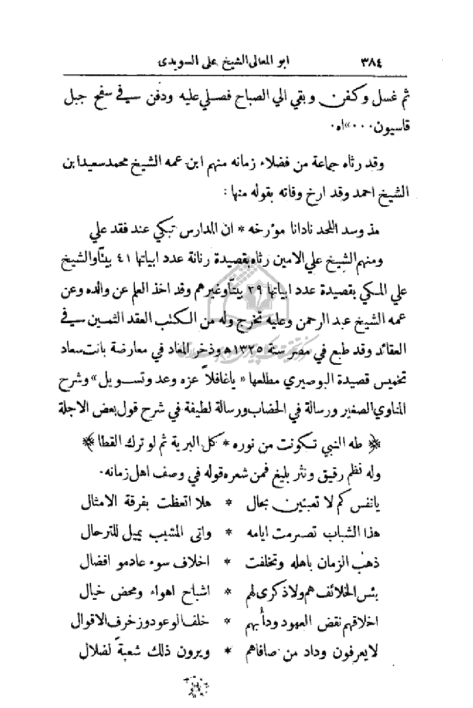 ثم غسل وكفن وبقي إلى الصباح فصلي عليه ودفن في سفح جبل قاسيون. . . اهـ