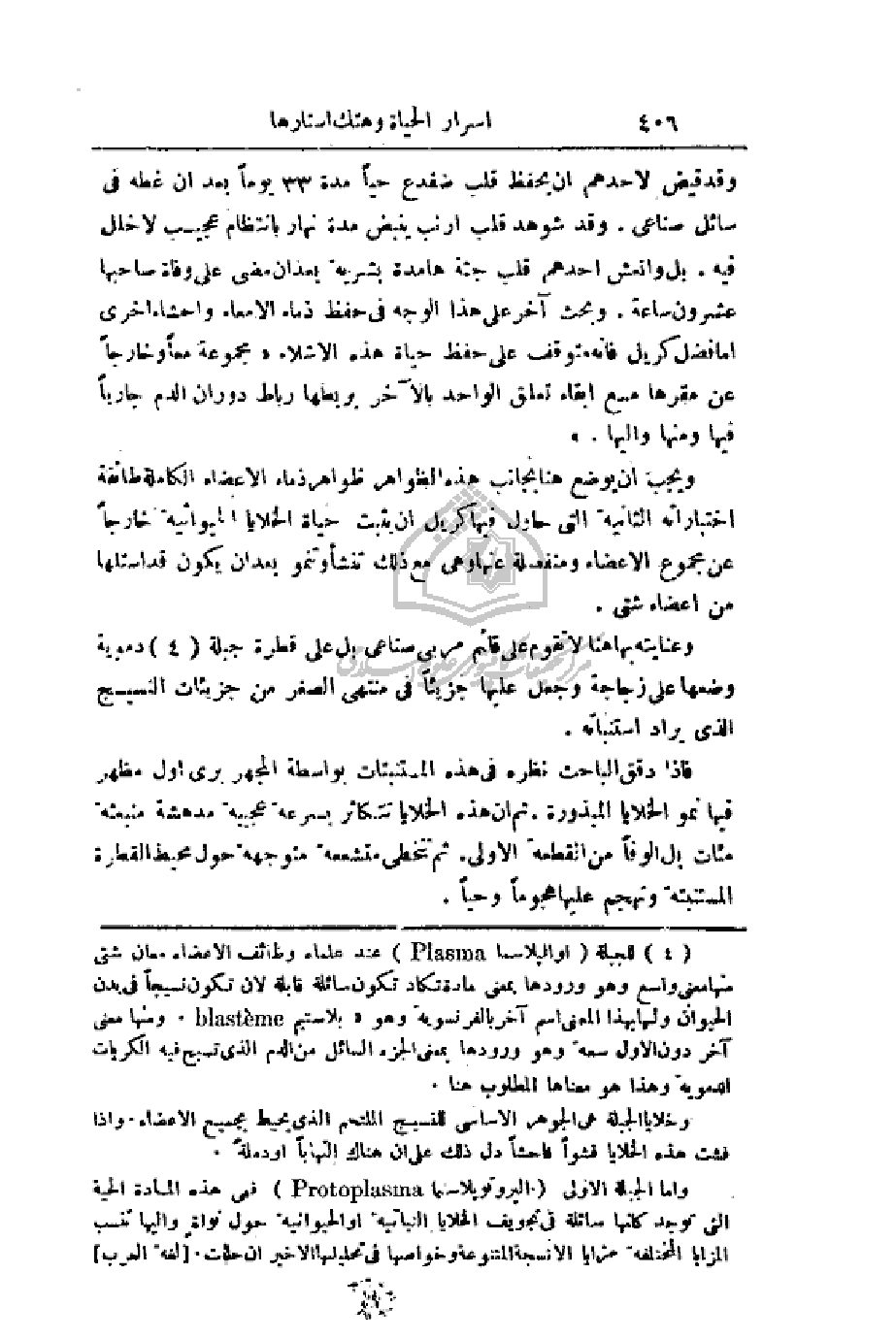 ويجب أن يوضع هنا بجانب هذه الظواهر ذماء الأعضاء الكاملة طائفة اختباراته الثانية التي حاول فيها كريل أن يثبت حياة الخلايا الحيوانية خارجاً عن مجموع الأعضاء ومنفصلة عنها وهي مع ذلك تنشأ وتنمو بعد أن يكون قد استلها من أعضاء شتى.