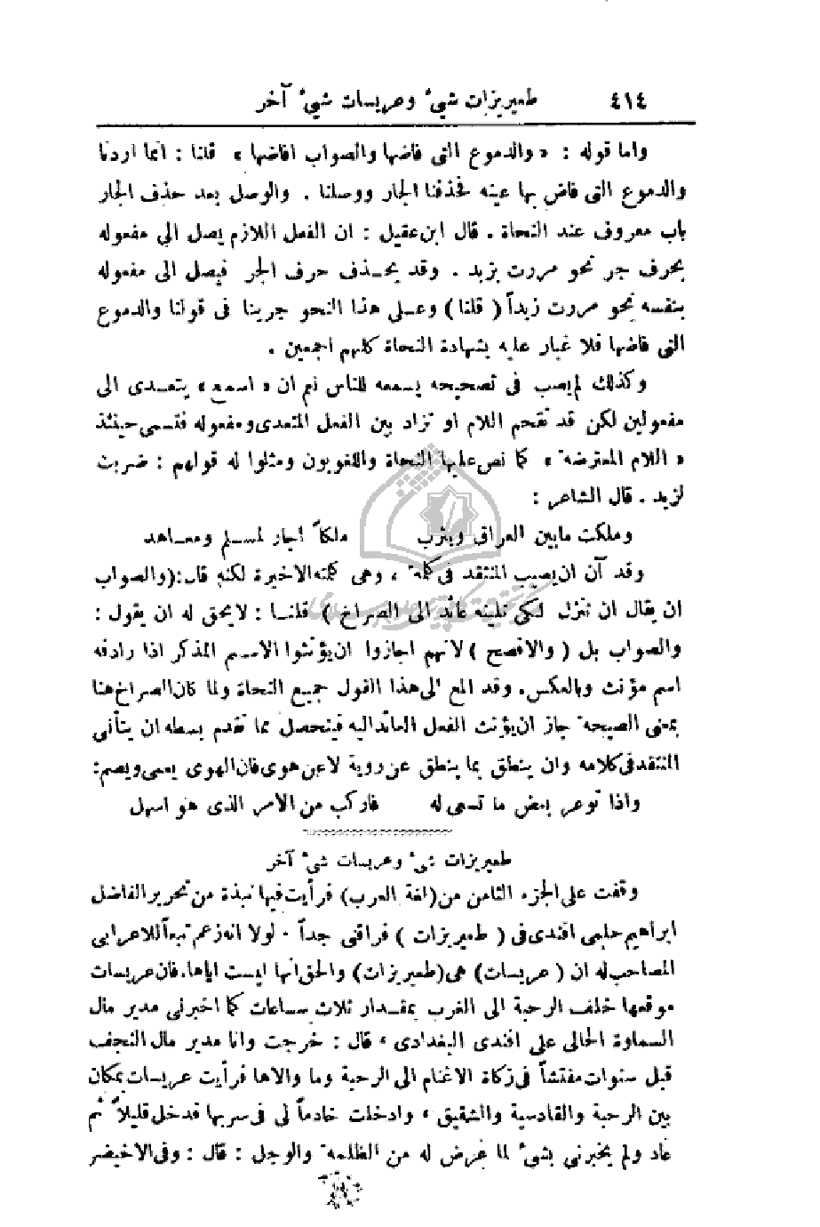 القول جميع النحاة ولما كان الصراخ هنا بمعنى الصيحة جاز أن يؤنث الفعل العائد إليه فيتحصل مما تقدم بسطه أن يتأنى المنتقد في كلامه وأن ينطق بما ينطق عن روية لا عن هوى فأن الهوى يعمي ويصم: