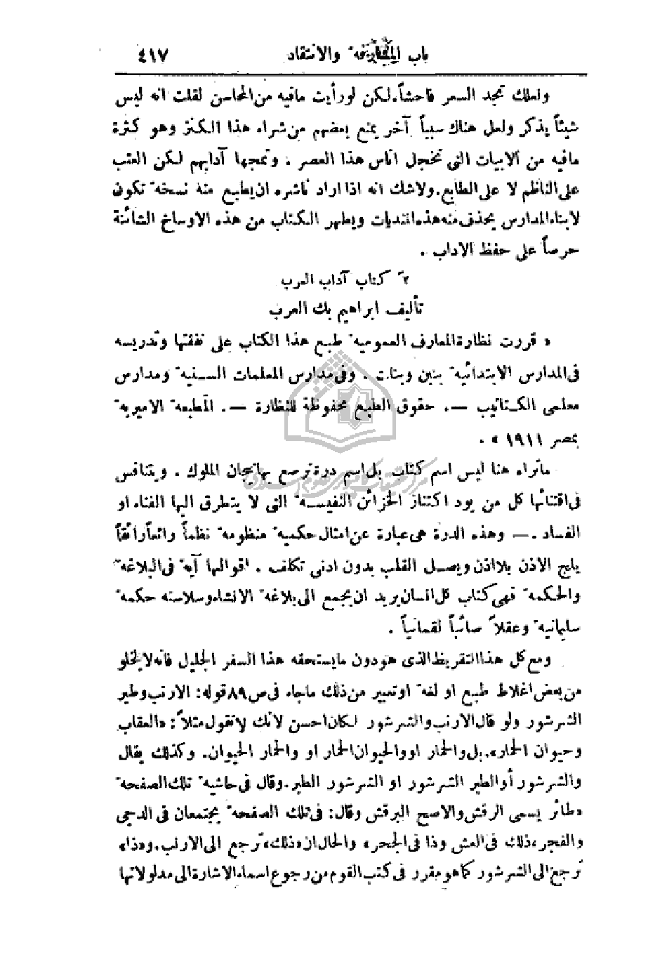 قررت نظارة المعارف العمومية طبع هذا الكتاب على نفقتها وتدريسه في المدارس الابتدائية بنين وبنات. وفي مدارس المعلمات السنية ومدارس معلمي الكتاتيب. - حقوق الطبع محفوظة للنظارة -. المطبعة الأميرية بمصر 1911.