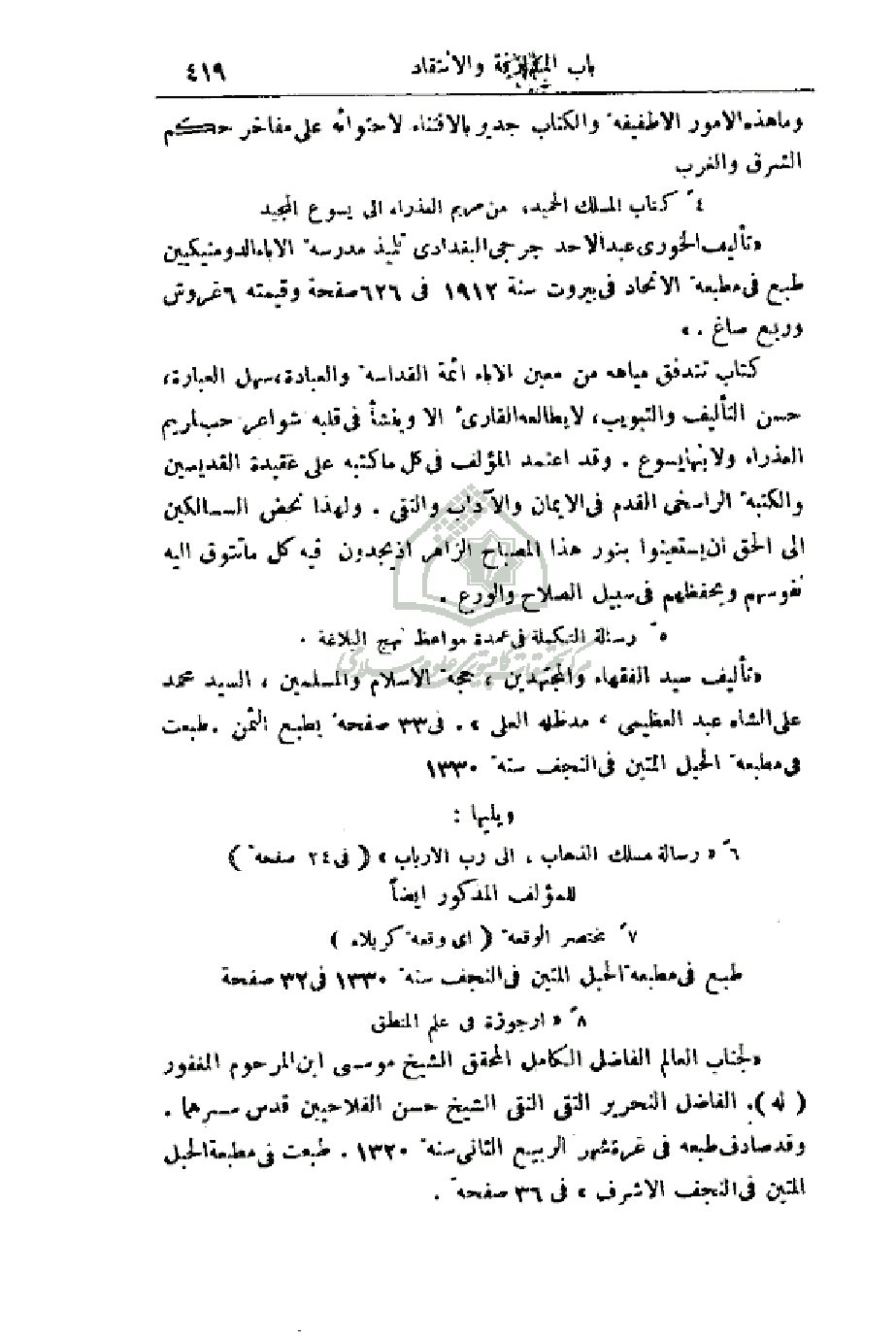 طبع في مطبعة الحبل المتين في النجف سنة 1330 في 32 صفحة