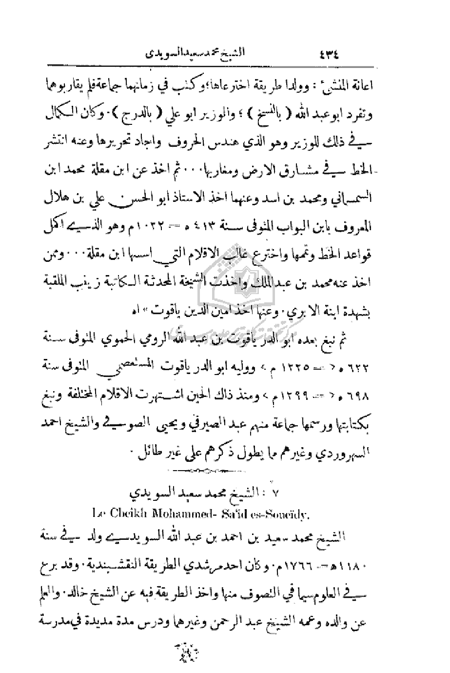 الشيخ محمد سعيد بن احمد بن عبد الله السويدي ولد في سنة 1180هـ - 1766م. وكان أحد مرشدي الطريقة النقشبندية. وقد برع في العلوم سيما في التصوف منها واخذ الطريقة فيه عن الشيخ خالد. والعلم عن والده وعمه الشيخ عبد الرحمن وغيرهما ودرس مدة مديدة في مدرسة