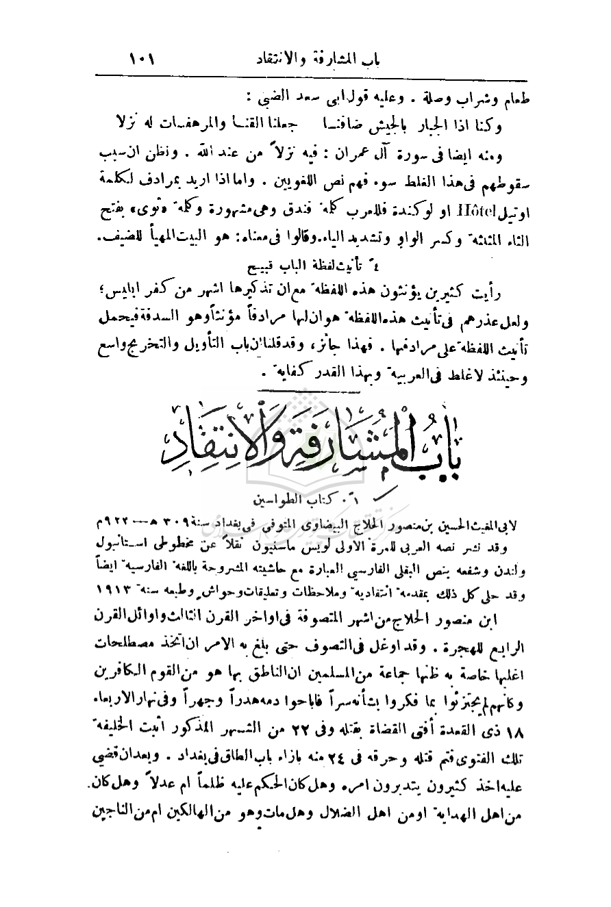 باب المشارفة والانتقاد