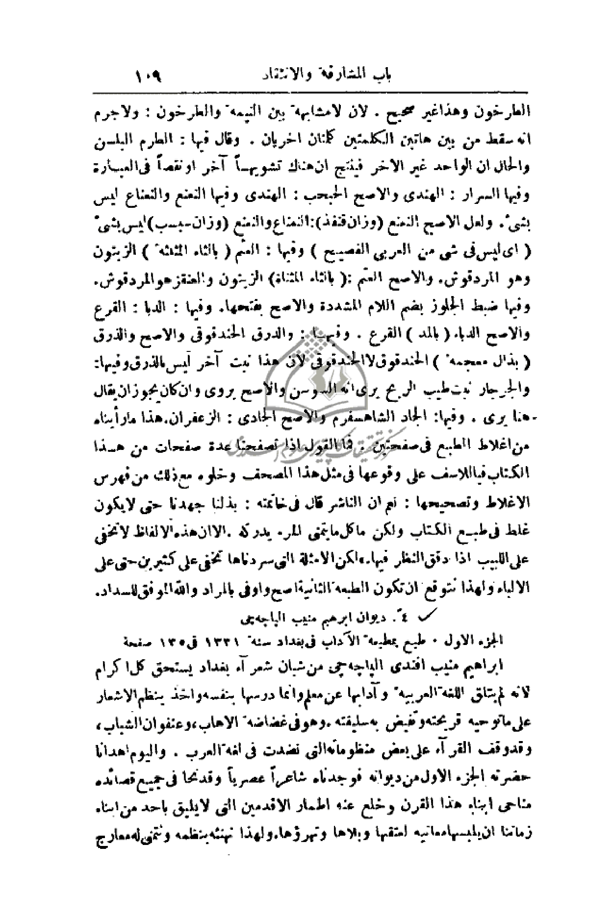 الجزء الأول. طبع بمطبعة الآداب في بغداد سنة 1331 في 135 صفحة