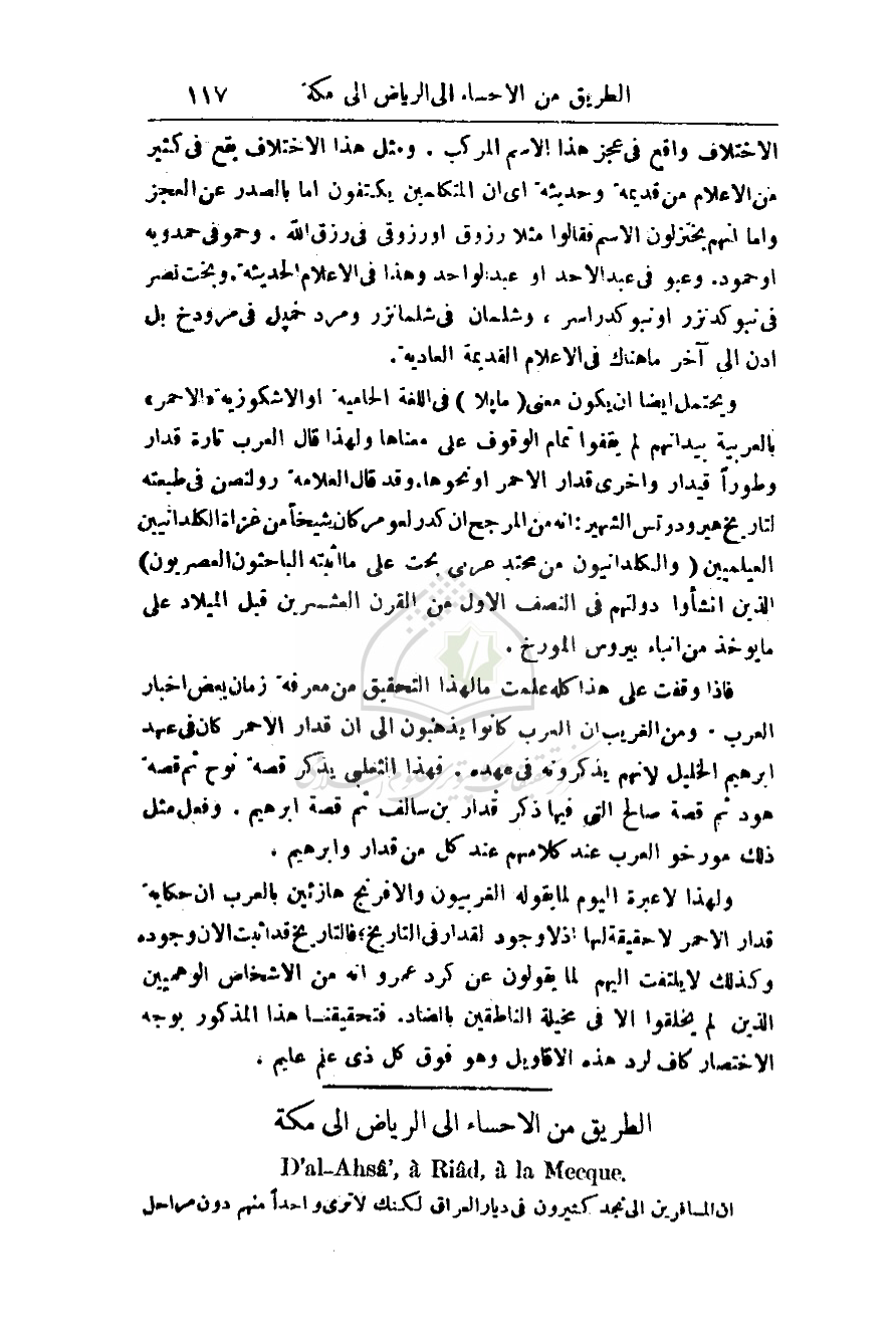 فإذا وقفت على هذا كله علمت ما لهذا التحقيق من معرفة زمان بعض أخبار العرب. ومن الغريب أن العرب كانوا يذهبون إلى أن قدار الأحمر كان في عهد إبراهيم الخليل لأنهم يذكرونه في عهده. فهذا الثعلبي يذكر قصة نوح ثم قصة هود ثم قصة صالح التي فيها ذكر قدار بن سالف ثم قصة إبراهيم. وفعل مثل ذلك مؤرخو العرب عند كلامهم عند كل من قدار وإبراهيم.