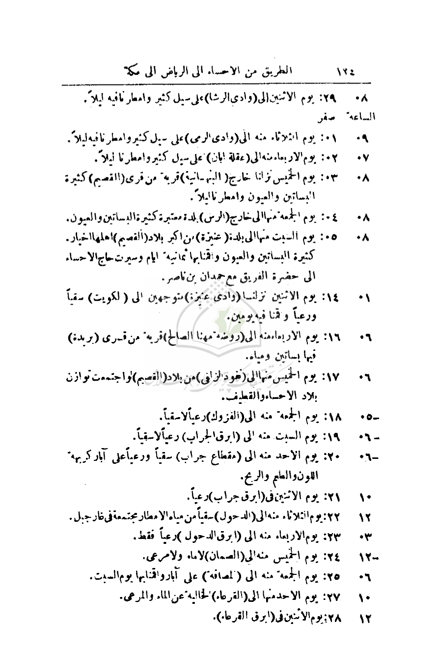 - 12 24: يوم الخميس منه إلى (الصمان) لا ماء ولا مرعى.