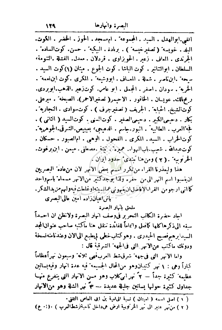 هذا وليعذرنا القراء من تكرار اسم بعض الأنهر لأن من عادة البصريين أن ينسبوا أسم النهر إلى من حفره ولذا يوجد كثير من الأنهر مسماة باسم واحد كما أني أرجو من القراء الأفاضل أن ينهوني عما نسيته أو غلطت فيه ولهم مزيد الشكر.