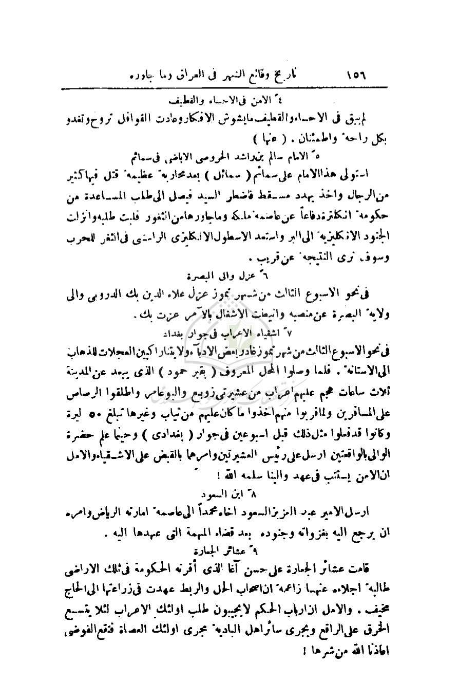 لم يبق في الاحساء والقطيف ما يشوش الأفكار وعادت القوافل تروح وتغدو بكل راحة واطمئنان.