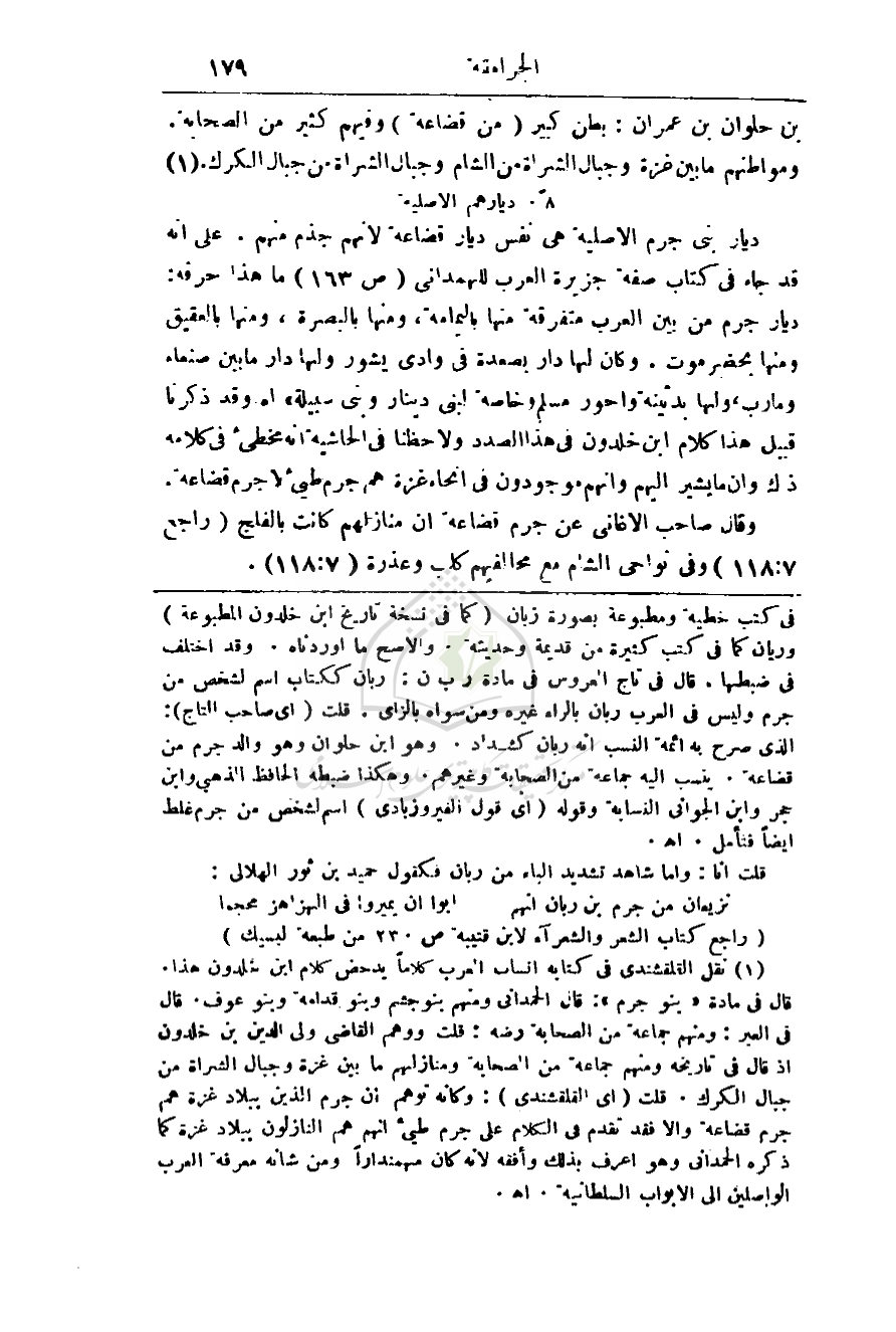 وقال صاحب الأغاني عن جرم قضاعة إن منازلهم كانت بالفلج (راجع 7: 118) وفي نواحي الشام مع محالفيهم كلب وعذرة (7: 118).