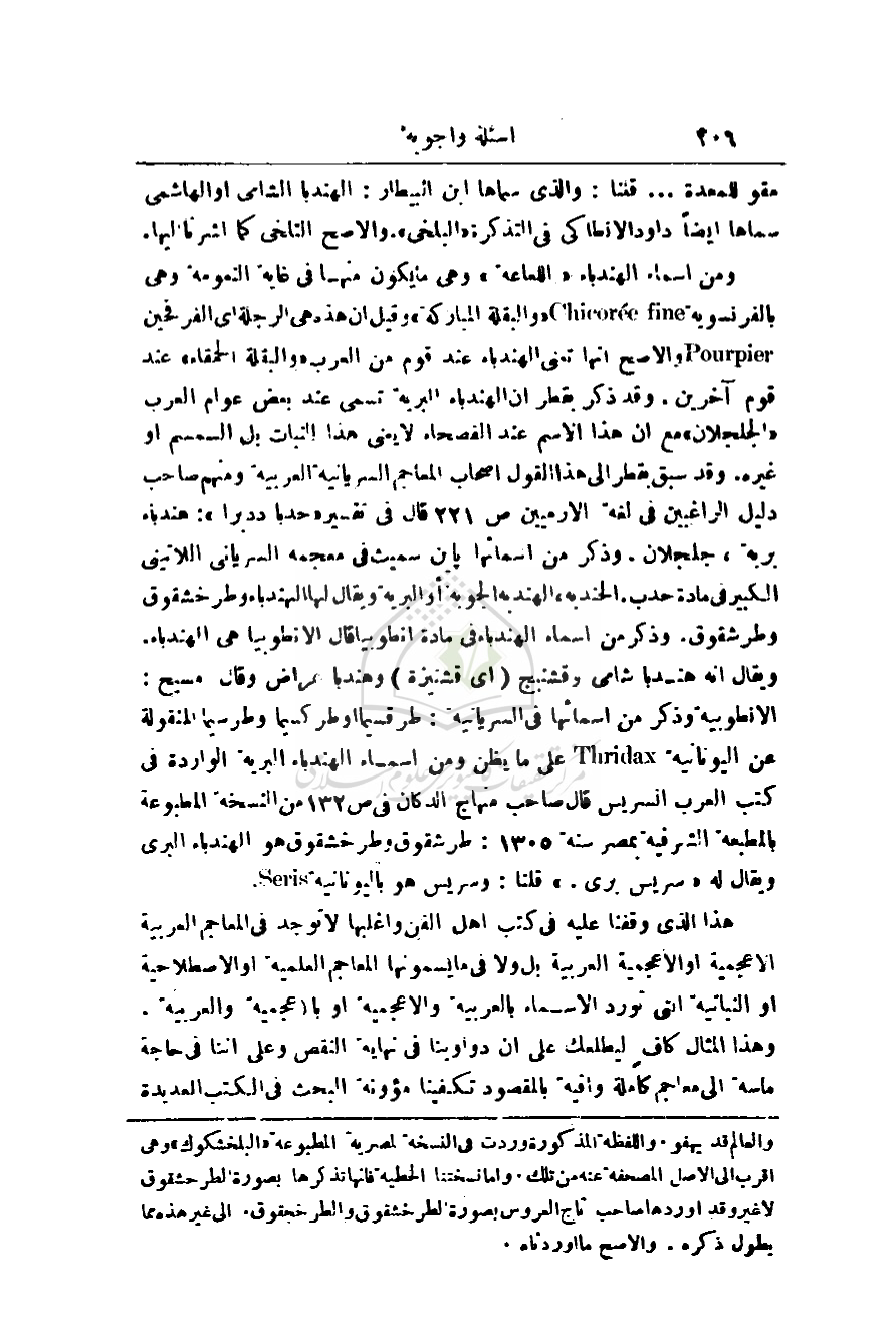هذا الذي وقفنا عليه في كتب أهل الفن واغلبها لا توجد في المعاجم العربية الأعجمية أو الأعجمية العربية بل ولا في ما يسمونها المعاجم العلمية أو الاصطلاحية أو النباتية التي تورد الأسماء بالعربية والأعجمية أو بالأعجمية والعربية. وهذا المثال كافٍ ليطلعك على أن دواوينا في نهاية النقص وعلى أننا في حاجة ماسة إلى معاجم كاملة وافية بالمقصود تكفينا مؤونة البحث في الكتب العديدة
