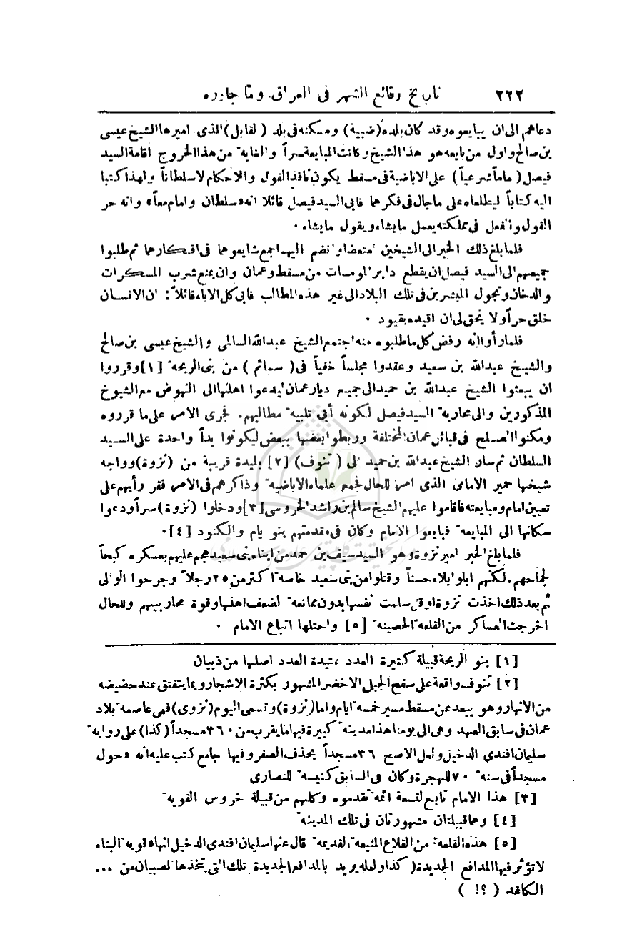 فلما بلغ ذلك الخبر إلى الشيخين امتعضا وأنضم إليهما جمع شايعوهما في أفكارهما ثم طلبوا جميعهم إلى السيد فيصل أن يقطع دابر المومسات من مسقط وعمان وأن يمنع شرب المسكرات والدخان وتجول المبشرين في تلك البلاد إلى غير هذه المطالب فأبى كل الإباء قائلاً: إن الإنسان خلق حراً ولا يحق لي أن أقيده بقيود.