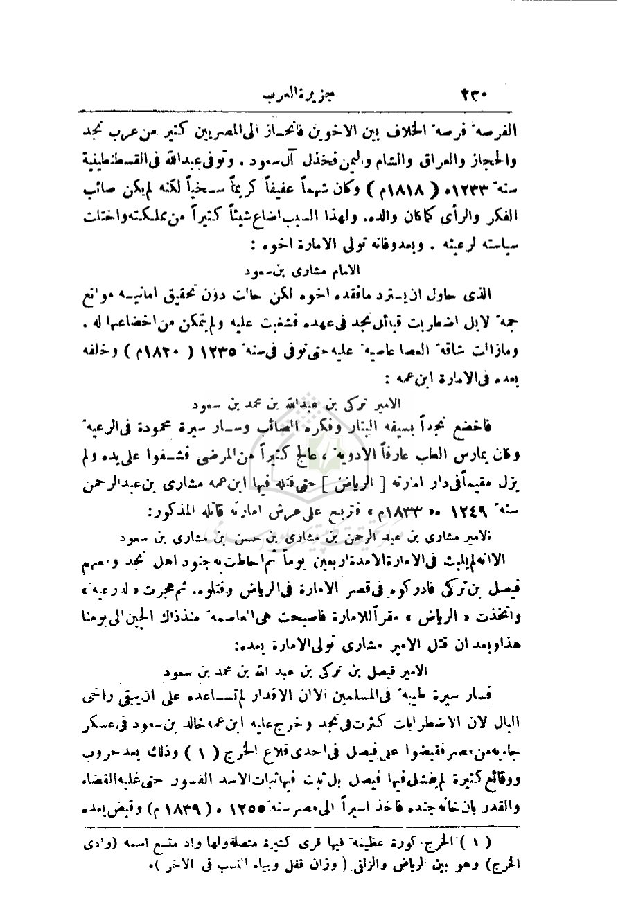 الذي حاول أن يسترد ما فقده أخوه لكن حالت دون أمانيه موانع جمة لا بل اضطربت قبائل نجد في عهده فشغبت عليه ولم يتمكن من إخضاعها له. وما زالت شاقة العصا عاصية عليه حتى توفى في سنة 1235هـ (1829م) وخلفه بعده في الإمارة ابن عمه:
