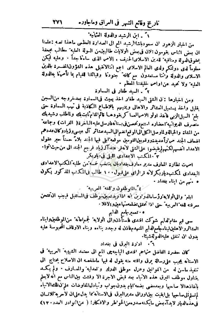 كان حضرة الفاضل مزاحم أفندي الباجه جي ألمع إلى معتمد الشبيبة العربية في الأستانة يجيب على رسالة برق وافته منه يقول له فيها ما ملخصه أن الإصلاح يحتاج إلى تنفيذ ما سن له من القوانين وعزل موظفي الدرك والعدلية والمعارف. ولم يكن يتناول موظف البرق هذه الأنباء بعد قبض الأجرة إلا وفشت بين الناس مع إنه لا يعلم بإنقاذها إلا صاحبها وبعد مضي بضعة أيام بدون جواب وتبادل المفاوضات علم أن تلك الأنباء لم تسلم إلى صاحبها بل أبقيت بين أوراق مدير البرق في الأستانة مما يدل على أن لا حرية للإنسان في هذه الديار لإبداء بعض ما يكنه صدره من الخواطر والأفكار! (عن النوادر العدد 130)
