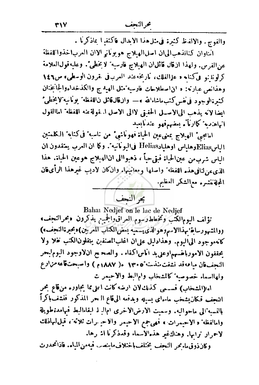 أما مجيء الهيلاج بمعنى عين الحياة فهو ناشئ من مناسبة في كتابة الكلمتين الياس وهلياس أو هلياد في اليونانية. وكما أن العرب يعتقدون إن الياس شرب من عين الحياة فبقى حياً، ذهبوا إلى أن الهيلاج هو عين الحياة. هذا الذي عن لنا في هذه اللفظة وأصلها ومعانيها. وإن كان لاديب غير هذا الرأي فإن المجلة تنشره مع الشكر العظيم.