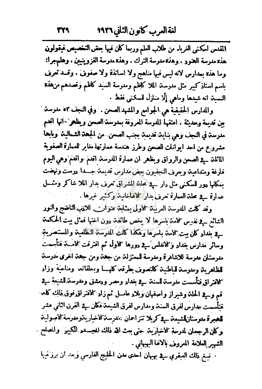 وقد كانت المدرسة العربية الأولى بمثابة عنوان للأدب الناضج والنور الشائع في نفوس
