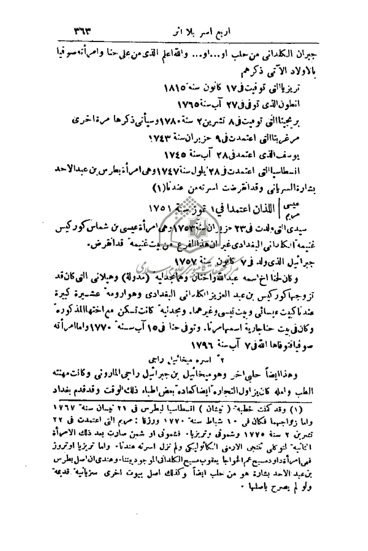 جبران الكلداني من حلب أو. . . أو. . . والله اعلم الذي من على حنا وامرأته صوفيا بالأولاد الآتي ذكرهم