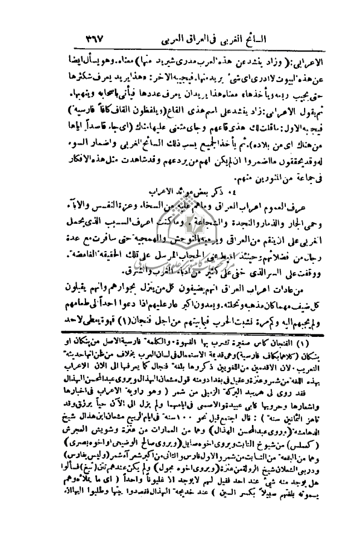 4 - ذكر بعض عوائد الأعراب