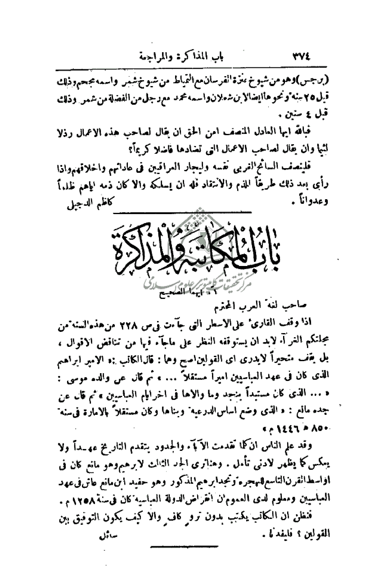 إذا وقف القارئ على الأسطر التي جاءت في ص 228 من هذه السنة من مجلتكم الغراء لا بد أن يستوقفه النظر على ما جاء فيها من تناقض الأقوال، بل يقف متحيراً لا يدري أي القولين أصح وهما: قال الكاتب: (الأمير إبراهيم الذي كان في عهد العباسيين أميراً مستقلاً. . .) ثم قال عن والده موسى: (. . . الذي كان مستبداً بنجد وما والاها في أخر أيام العباسيين) ثم قال عن جده مانع: (الذي وضع أساس الدرعية وبناها وكان مستقلاً بالإمارة في سنة 850هـ - 1446م)