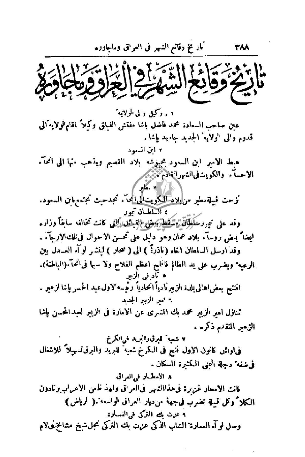 تاريخ وقائع الشهر في العراق وما جاوره