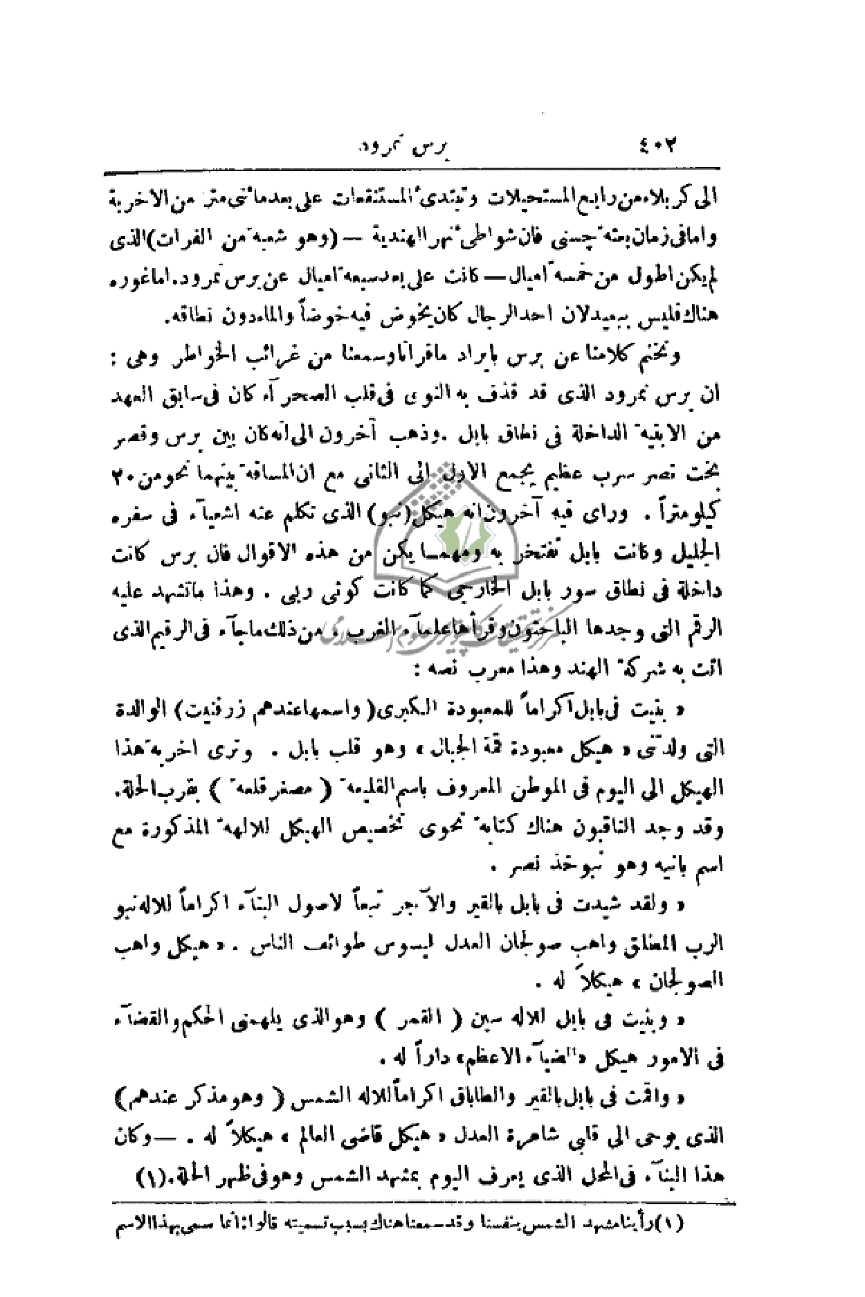 ونختم كلامنا عن برس بإيراد ما قرأنا وسمعنا من غرائب الخواطر وهي: أن برس نمرود الذي قد قذف به النوى في قلب الصحراء كان في سابق العهد من الأبنية الداخلة في نطاق بابل. وذهب آخرون إلى أنه كان بين برس وقصر بخت نصر سرب عظيم يجمع الأول إلى الثاني مع أن المسافة بينهما نحو من 20 كيلو متر. ورأى فيه آخرون أنه هيكل (نبو) الذي تكلم عنه اشعيآء في سفره الجليل وكانت بابل تفتخر به ومهما يكن من هذه الأقوال