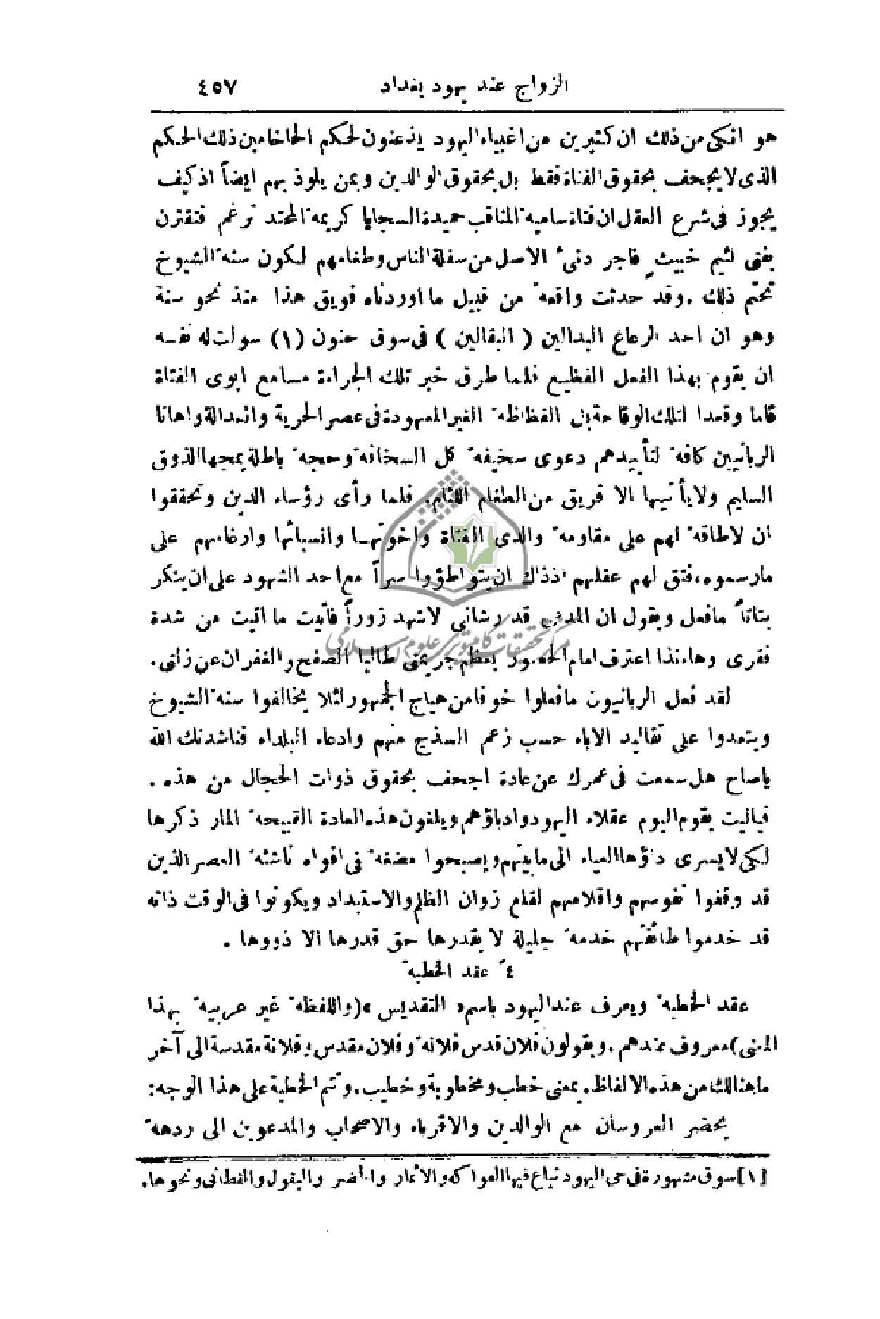 لقد فعل الربانيون ما فعلوا خوفاً من هياج الجمهور لئلا يخالفوا سنة الشيوخ ويتعدوا على تقاليد الأباء حسب زعم السذج منهم وادعاء البلداء فناشدتك الله يا صاح هل سمعت في عمرك عن عادة أجحف بحقوق ذوات الحجال من هذه. فيا ليت يقوم اليوم عقلاء اليهود وأدباؤهم ويلغون هذه العادة القبيحة المار ذكرها لكي لا يسري داؤها العياء إلى ما بينهم ويصبحوا مضغة في أفواه ناشئة العصر الذين قد وقفوا نفوسهم وأقلامهم لقلع زوان الظلم والاستبداد ويكونوا في الوقت ذاته قد خدموا طائفتهم خدمة جليلة لا يقدرها حق قدرها إلا ذووها.