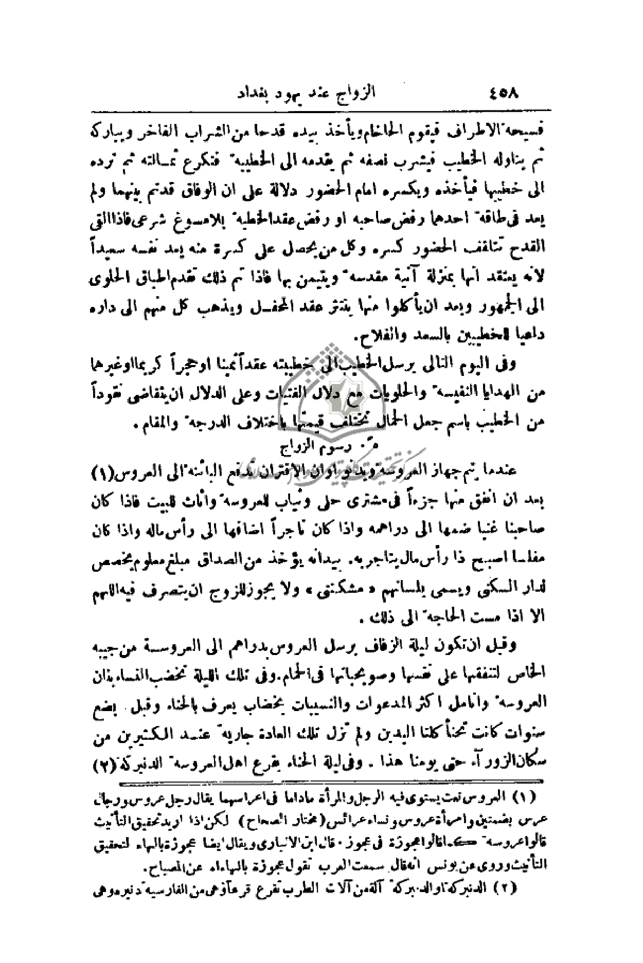 عندما يتم جهاز العروسة ويدنوا أوان الاقتران تدفع البائنة إلى العروس بعد أن انفق منها جزءاً في مشتري حلي وثياب للعروسة وأثاث للبيت فإذا كان صاحبنا غنيا ضمها إلى دراهمه وإذا كان تاجراً أضافها إلى رأس ماله وإذا كان مفلساً أصبح ذا رأس مال يتاجر به. بيد أنه يؤخذ من الصداق مبلغ معلوم يخصص لدار السكنى ويسمى بلسانهم (مشكنتي) ولا يجوز للزوج أن يتصرف فيه اللهم إلا إذا مست الحاجة إلى ذلك.