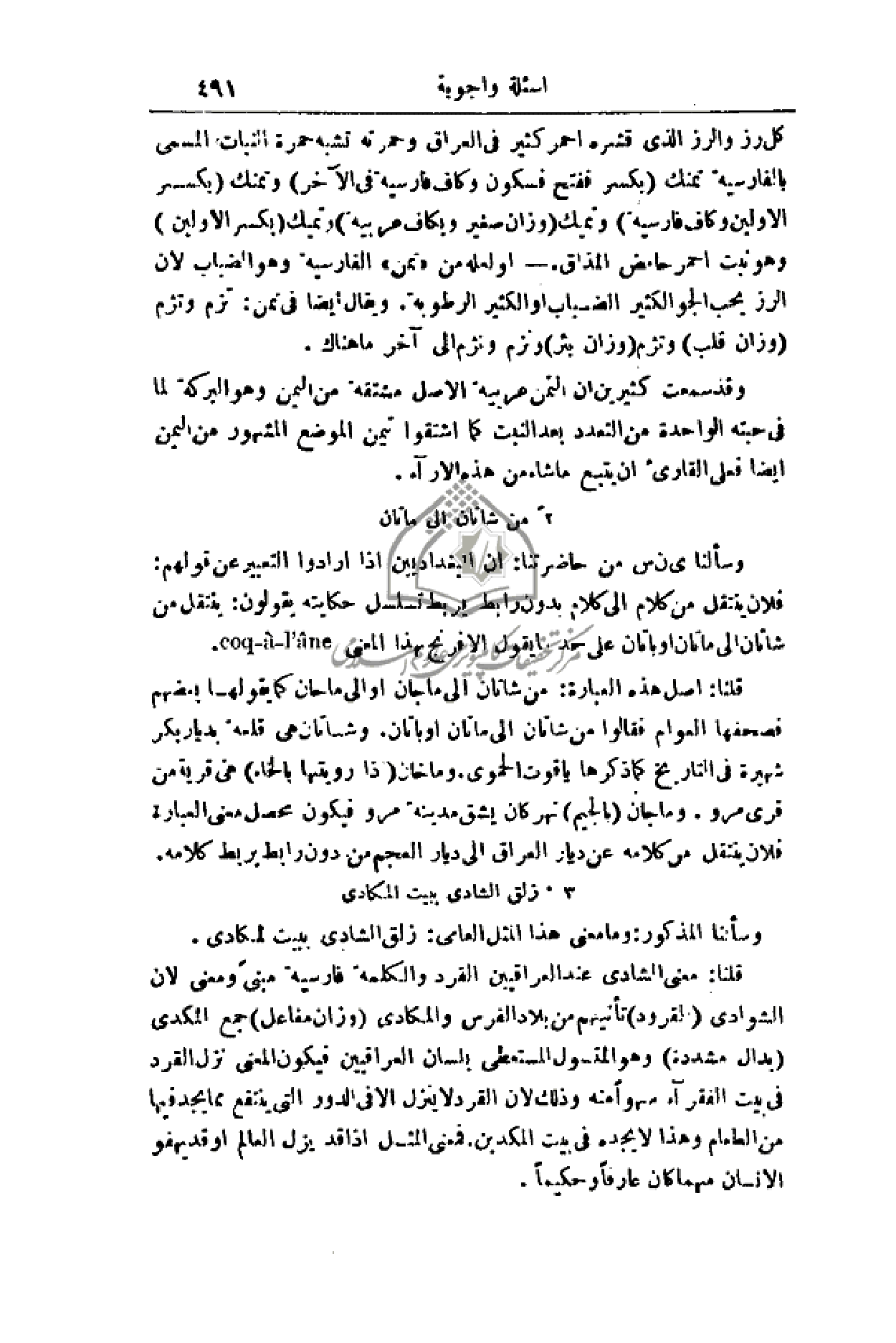 وسألنا ي ن س من حاضرتنا: إن البغداديين إذا أرادوا التعبير عن قولهم: فلان ينتقل من كلام إلى كلام بدون رابط يربط تسلسل حكايته يقولون: ينتقل من شاتان إلى ماتان أو باتان على حد ما يقول الإفرنج بهذا المعنى -