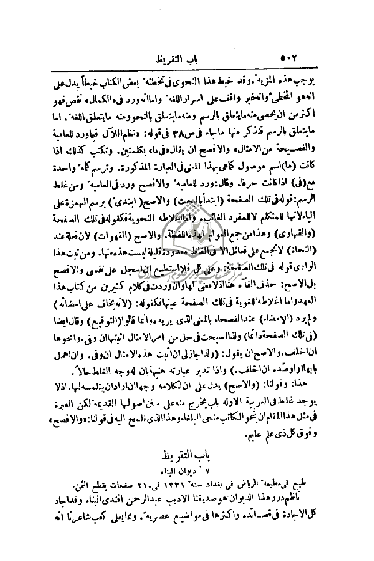 طبع في مطبعة الرياض في بغداد سنة 1331 في 210 صفحات بقطع الثمن.