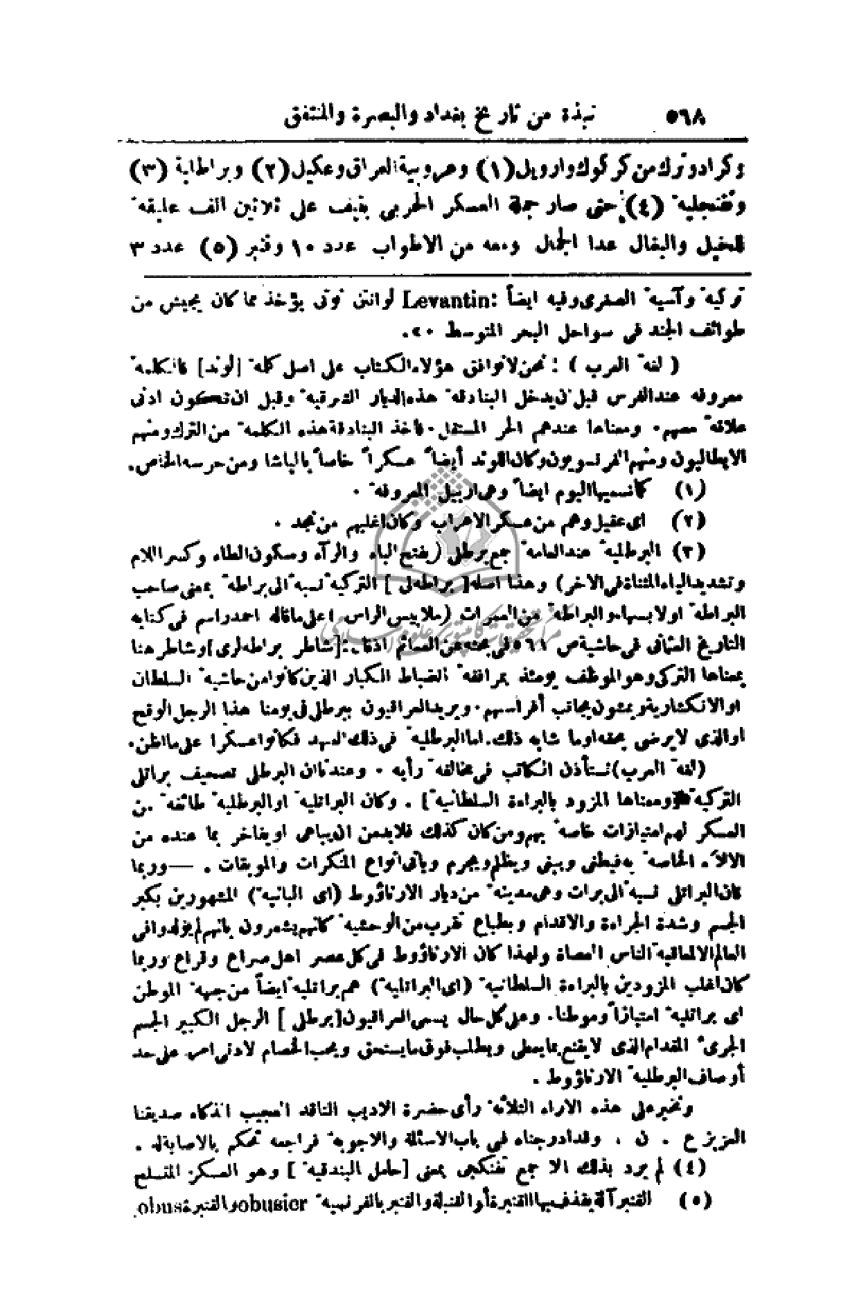 وكرادوترك من كركوك وارويل وعروبية العراق وعكيل وبراطلية وتفنجلية حتى صار جملة العسكر الحربي ينيف على ثلاثين ألف عليقة. للخيل والبغال عدا الجمال ومعه من الأطواب عدد 10 وقنبر عدد 3