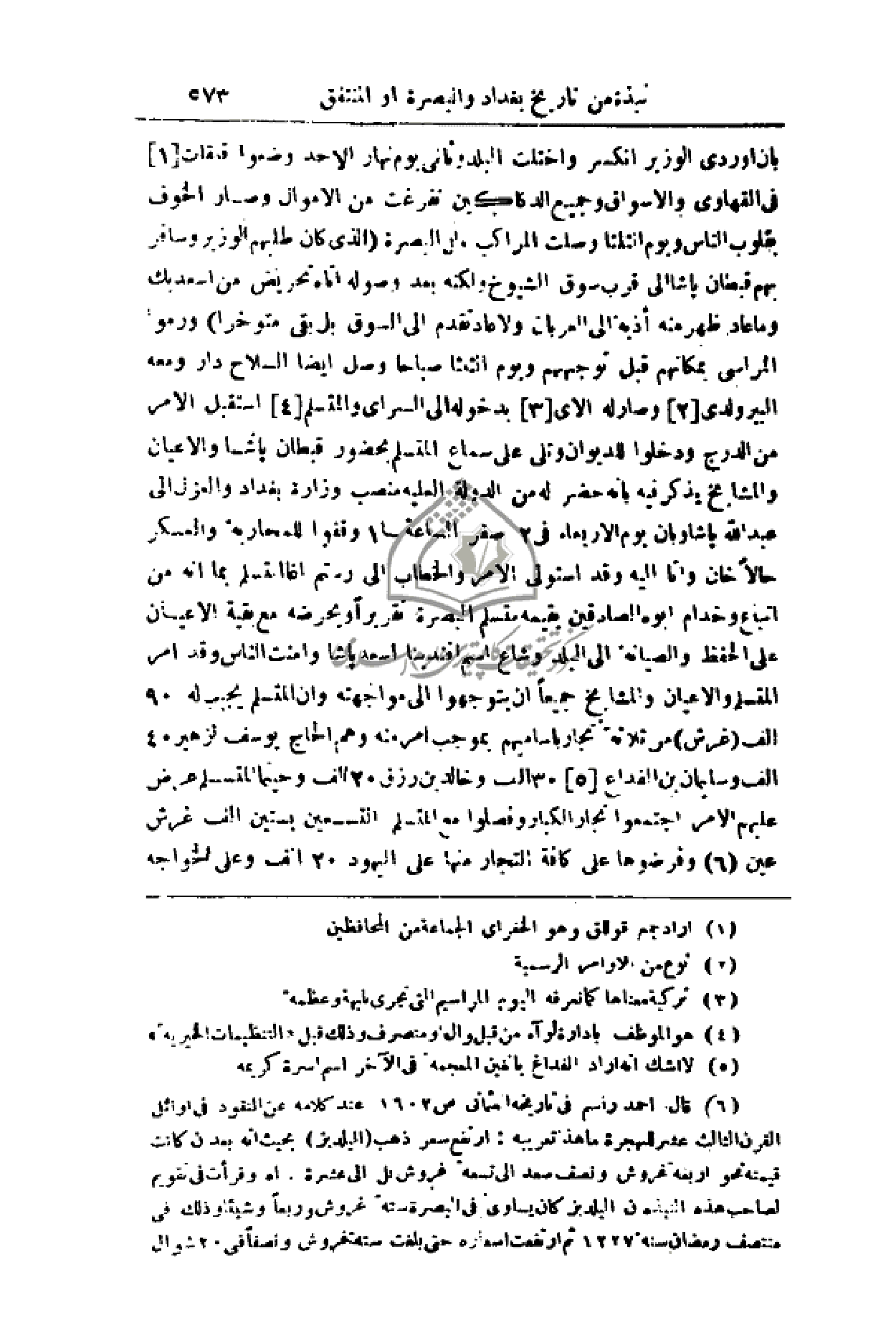 أبوه الصادقين بقيمه متسلم البصرة تقريراً ويحرضه مع بقية الأعيان على الحفظ والصيانة إلى البلد وشاع اسم أفندينا اسعد باشا وأمنت الناس وقد أمر المتسلم والأعيان والمشايخ جميعاً أن يتوجهوا إلى مواجهته وأن المتسلم يجيب له 90 ألف (غرش) من ثلاثة تجر بأسامهيم بموجب أمر منه وهم الحاج يوسف الزهير 40 ألف وسليمان بن الفداع 30 ألف وخالد بن رزق 20 ألف وحينما المستلم عرض عليهم الأمر اجتمعوا تجار الكبار وفصلوا مع المتسلم التسعين بستين ألف غرش عين وفرضوها على كافة التجار منها على اليهود 20 ألف وعلى الخواجة