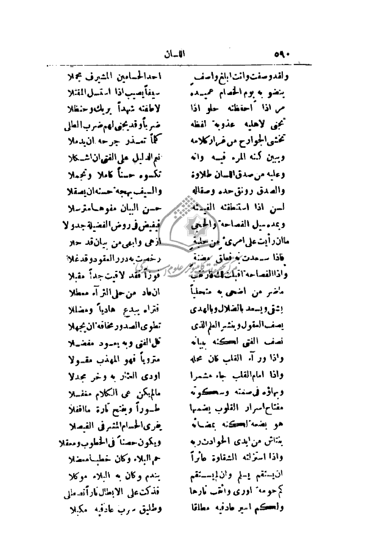 ويمده سيل الفصاحة والحجى ... فيفيض في روض الفضيلة جدولا