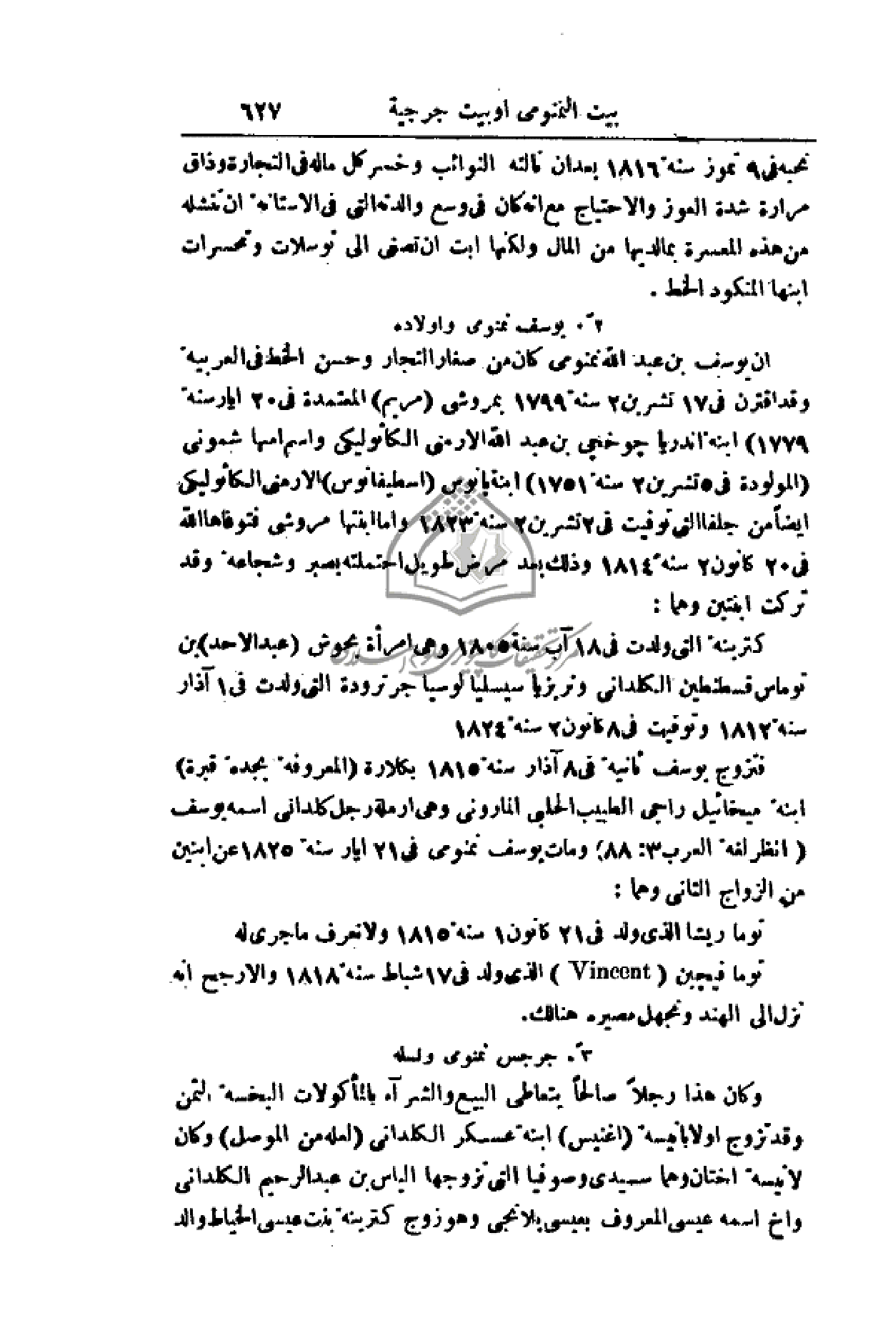 راجي الطبيب الحلبي الماروني وهي أرملة رجل كلداني اسمه يوسف (أنظر العرب 3: 88) ومات يوسف نمنومي في 21 أيار سنة 1825 عن ابنين من الزواج الثاني وهما: