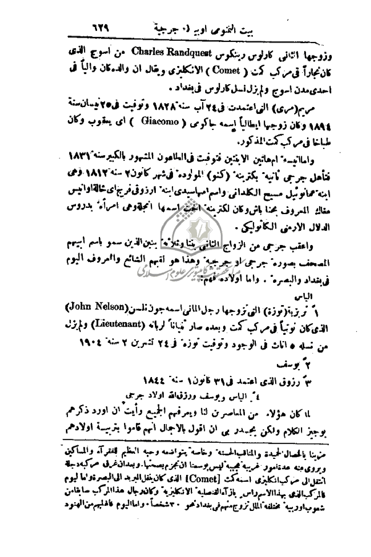 مريم (مري) التي اعتمدت في 24 آب سنة 1828 وتوفيت في 25 نيسان سنة 1894 وكان زوجها إيطالياً اسمه جاكومي أي يعقوب وكان طباخاً في مركب كمت المذكور.