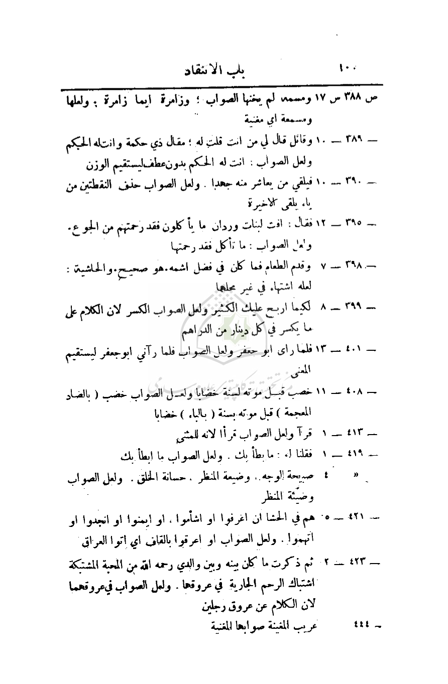 ص399 س8 لكيما اربح عليك الكثير ولعل الصواب الكسر لأن الكلام على ما يكسر في كل دينار من الدراهم