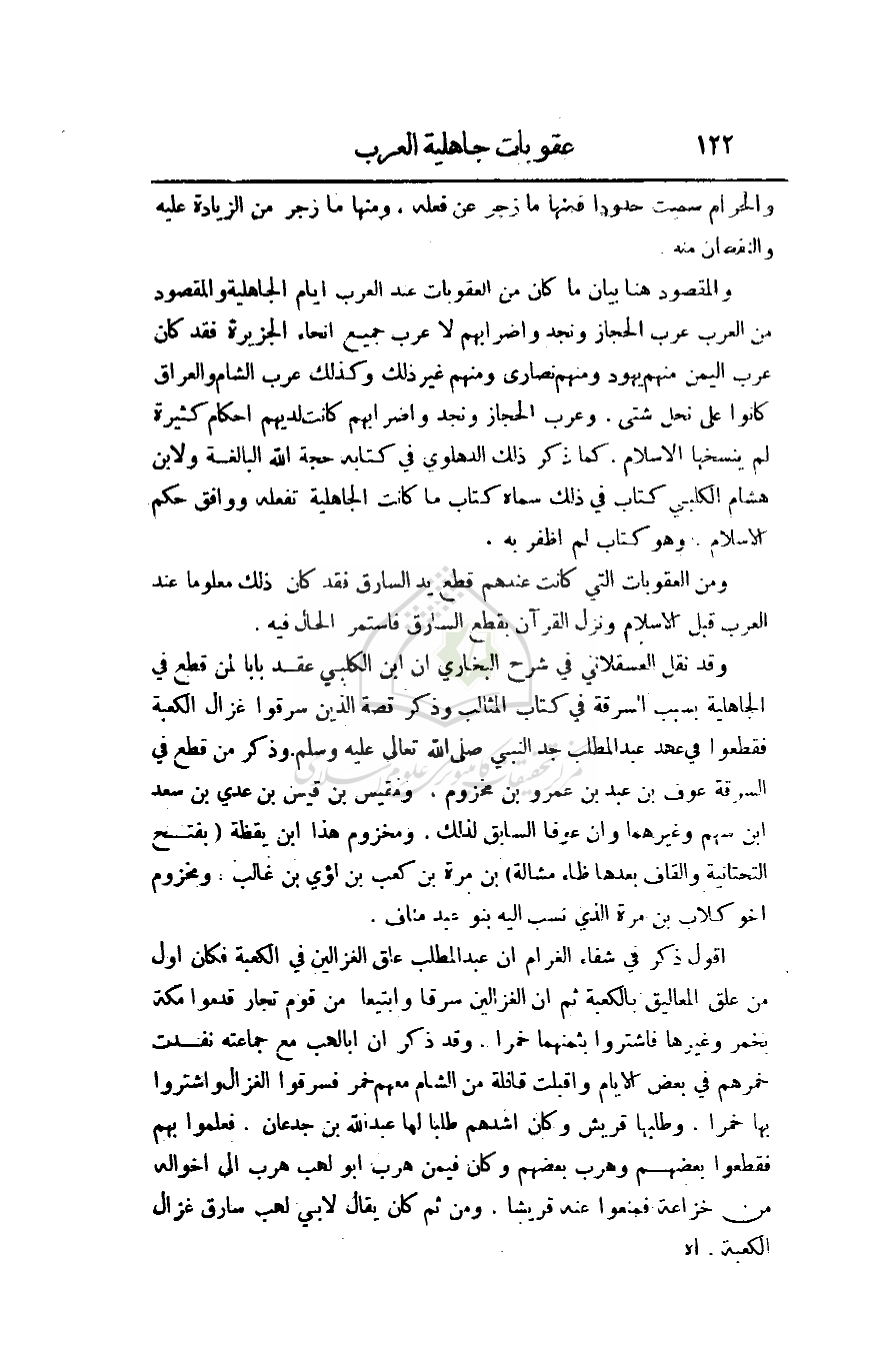 والمقصود هنا بيان ما كان من العقوبات عند العرب أيام الجاهلية والمقصود من العرب