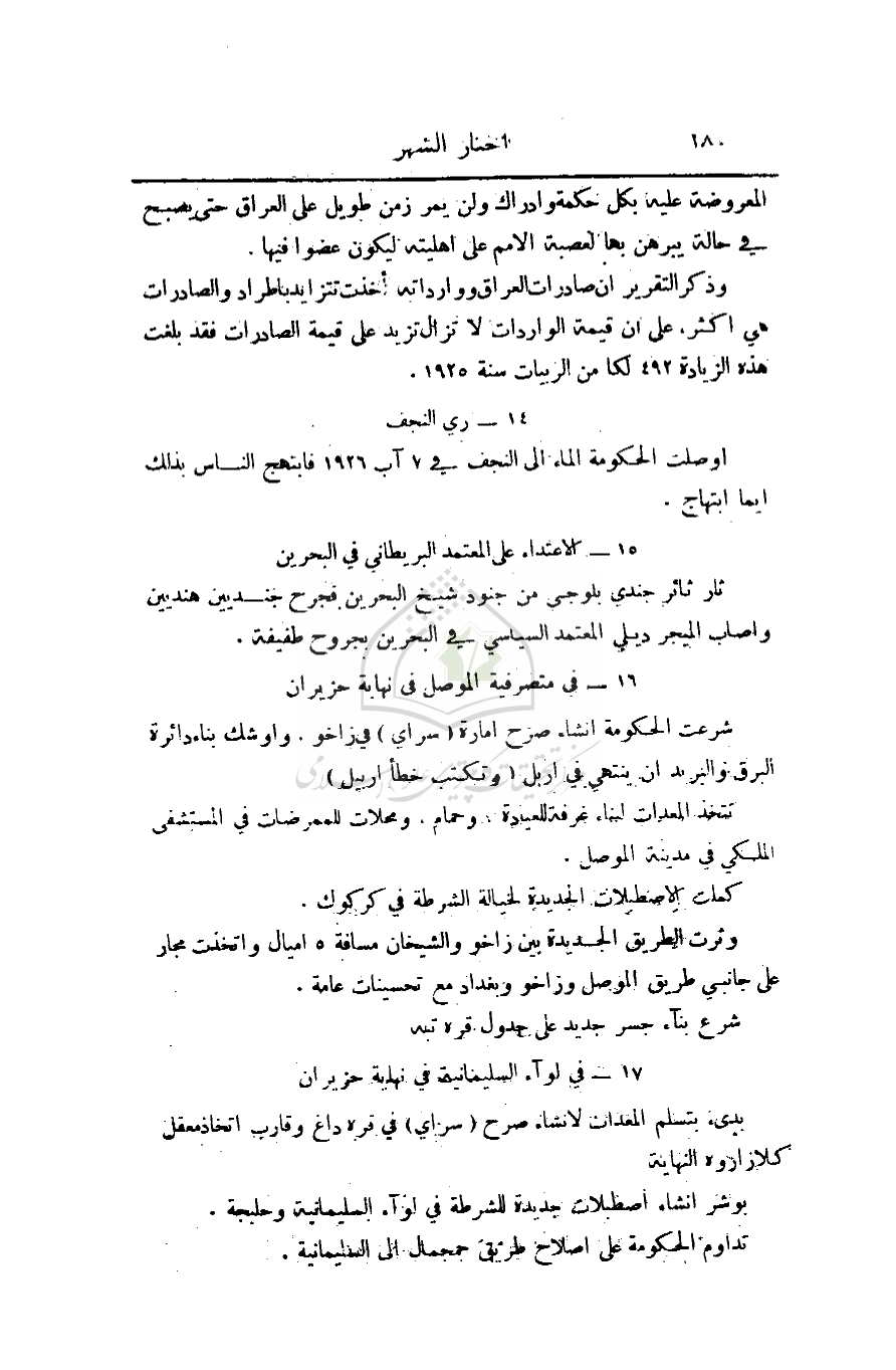 14 - أوصلت الحكومة الماء إلى النجف في 7 آب 1926
