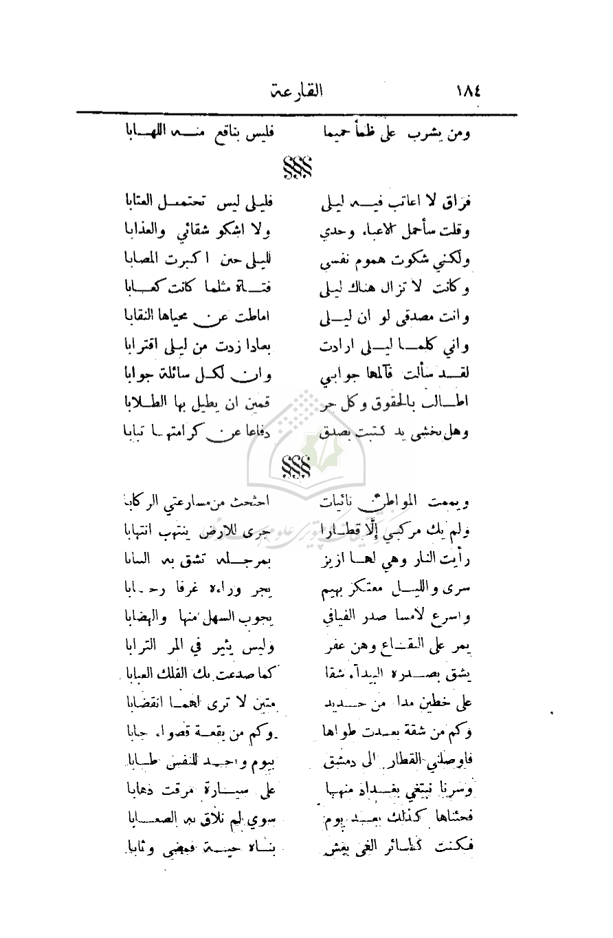 ولم يك مركبي إلاَّ قطارا ... جرى للأرض ينتهب القبابا