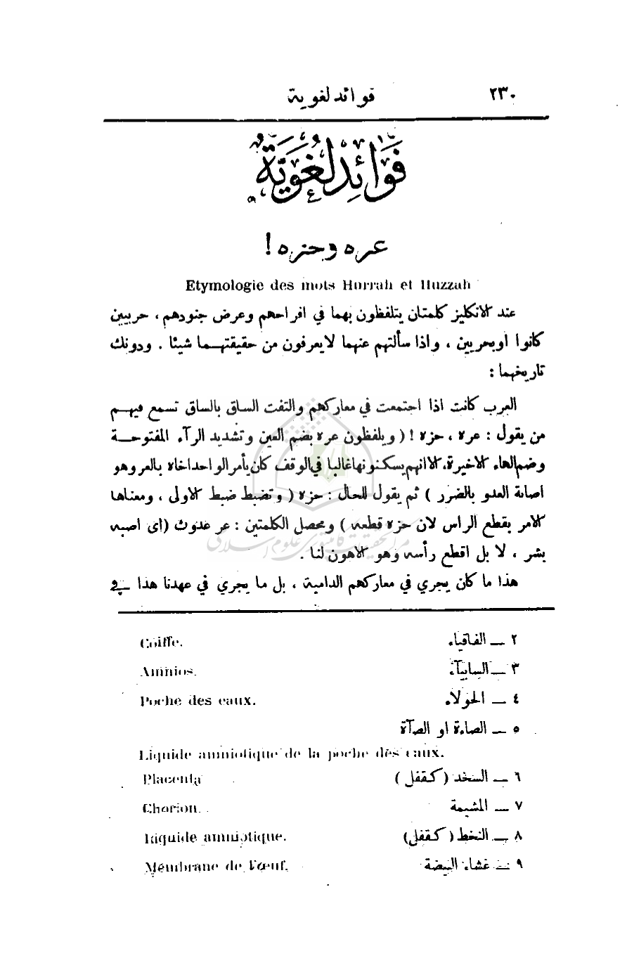 العرب كانت إذا اجتمعت في معاركهم والتفت الساق بالساق تسمع فيهم من يقول: عره، حزه! (ويلفظون عره بضم العين وتشديد الراء المفتوحة وضم الهاء الأخيرة إلا أنهم يسكنونها غالبا في الوقف كان يأمر الواحد أخاه بالعر وهو إصابة العدو بالضرر) ثم يقول للحال: حزه (وتضبط ضبط الأولى، ومعناها بقطع الرأس لأن حزه قطعه) ومحصل الكلمتين؛ عر عدوك (أي أصبه بشر، لا بل اقطع رأسه وهو الأهون لنا.