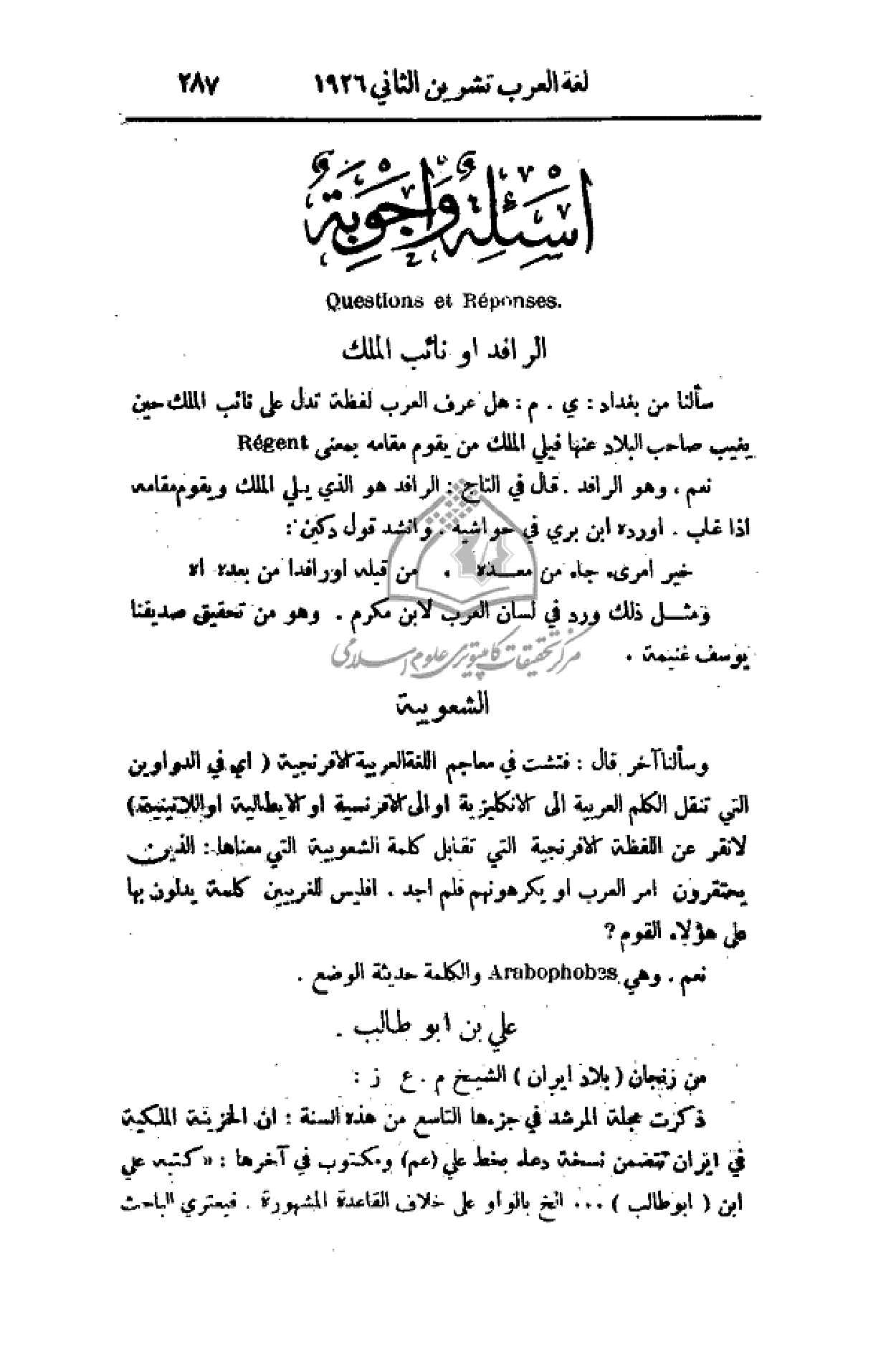 سألنا من بغداد: ي. م: هل عرف العرب لفظة تدل على نائب الملك حين يغيب صاحب البلاد عنها فيلي الملك من يقوم مقامه بمعنى