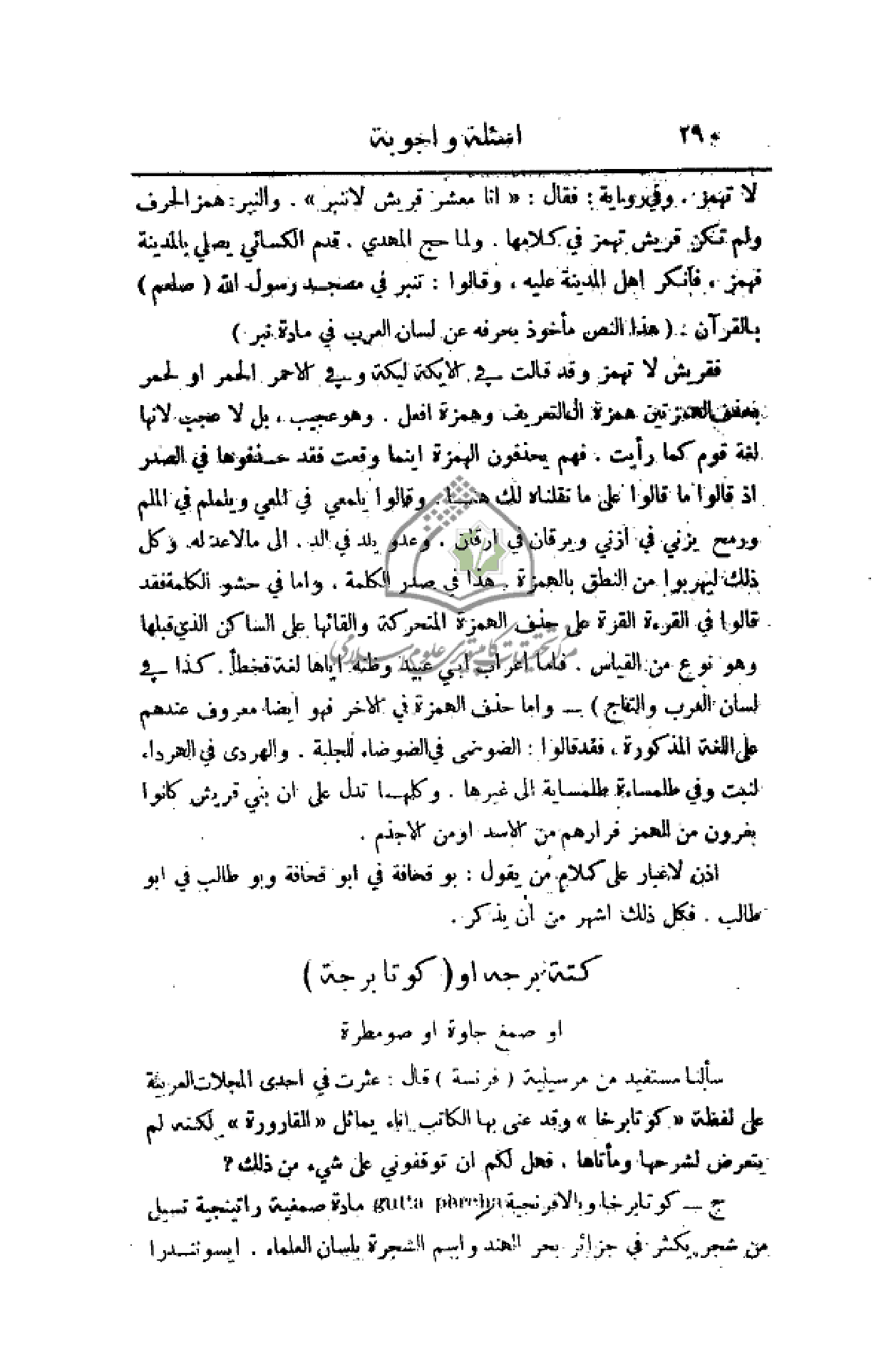 سألنا مستفيد من مرسيلية (فرنسة) قال: عثرت في إحدى المجلات العربية على لفظة (كوتابرخا) وقد عنى بها الكاتب إناء يماثل (القارورة) لكنه لم يتعرض لشرحها ومأتاها، فهل لكم أن توقفوني على شيء من ذلك؟
