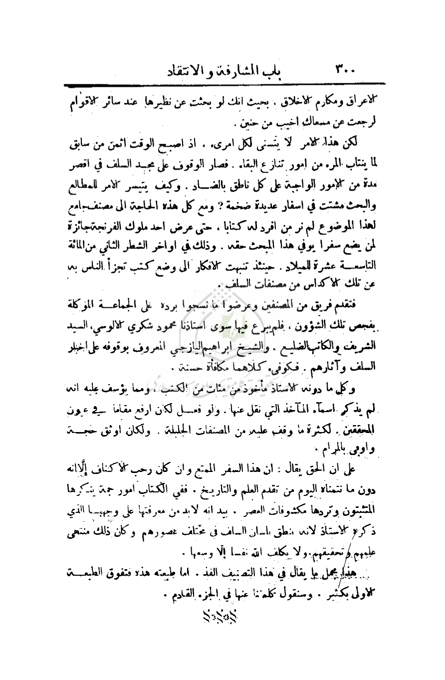 على أن الحق يقال: أن هذا السفر الممتع وأن كان رحب الأكتاف إلاَّ أنه دون ما نتمناه اليوم من تقدم العلم والتاريخ. ففي الكتاب أمور جمة ينكرها المتثبتون وتردها مكشوفات العصر. بيد أنه لا بد من معرفتها على وجهها الذي ذكره الأستاذ لأنه ينطق بلسان السلف في مختلف عصورهم وكان ذلك منتهى علمهم وتحقيقهم. ولا يكلف الله نفسا إلاَّ وسعها.