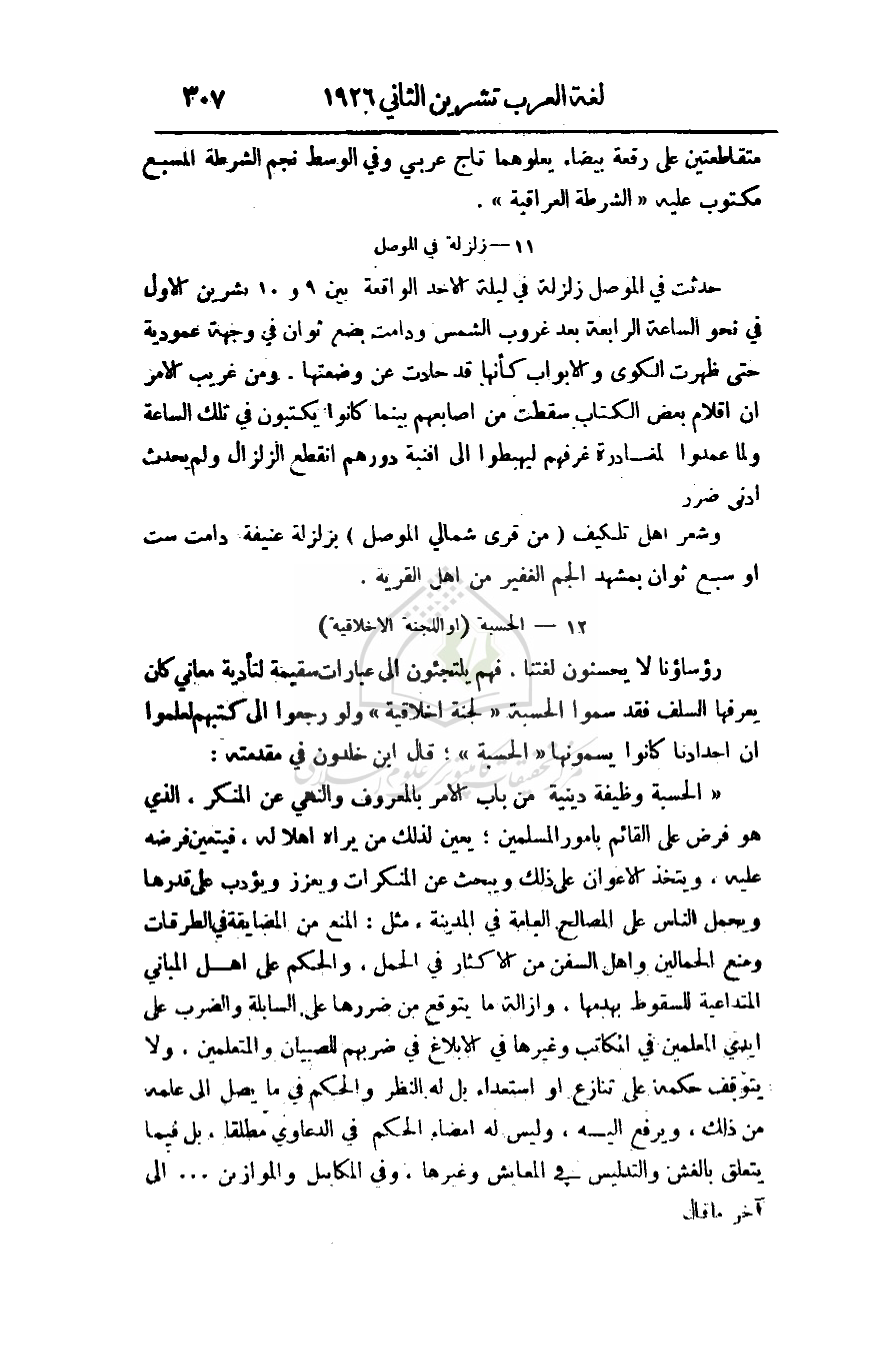 رؤساؤنا لا يحسنون لغتنا، فهم يلتجئون إلى عبارات سقيمة لتأدية معاني كان يعرفها السلف فقد سموا الحسبة (لجنة أخلاقية) ولو رجعوا إلى كتبهم لعلموا أن أجدادنا كانوا يسمونها (الحسبة)؛ قال ابن خلدون في مقدمته: